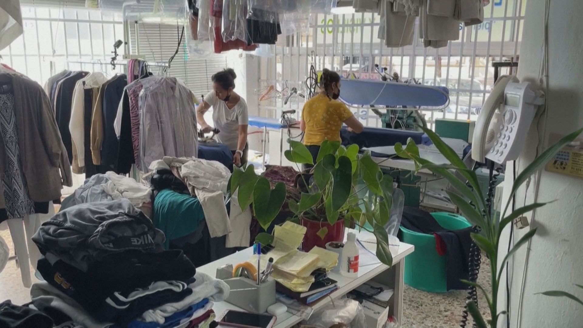 洗衣機轉個不停,天然氣漲價連帶影響電費,西班牙店家苦不堪言,西班牙乾洗店業者瑪朵娜朵表示:「電費真的漲很多,收入又低。」