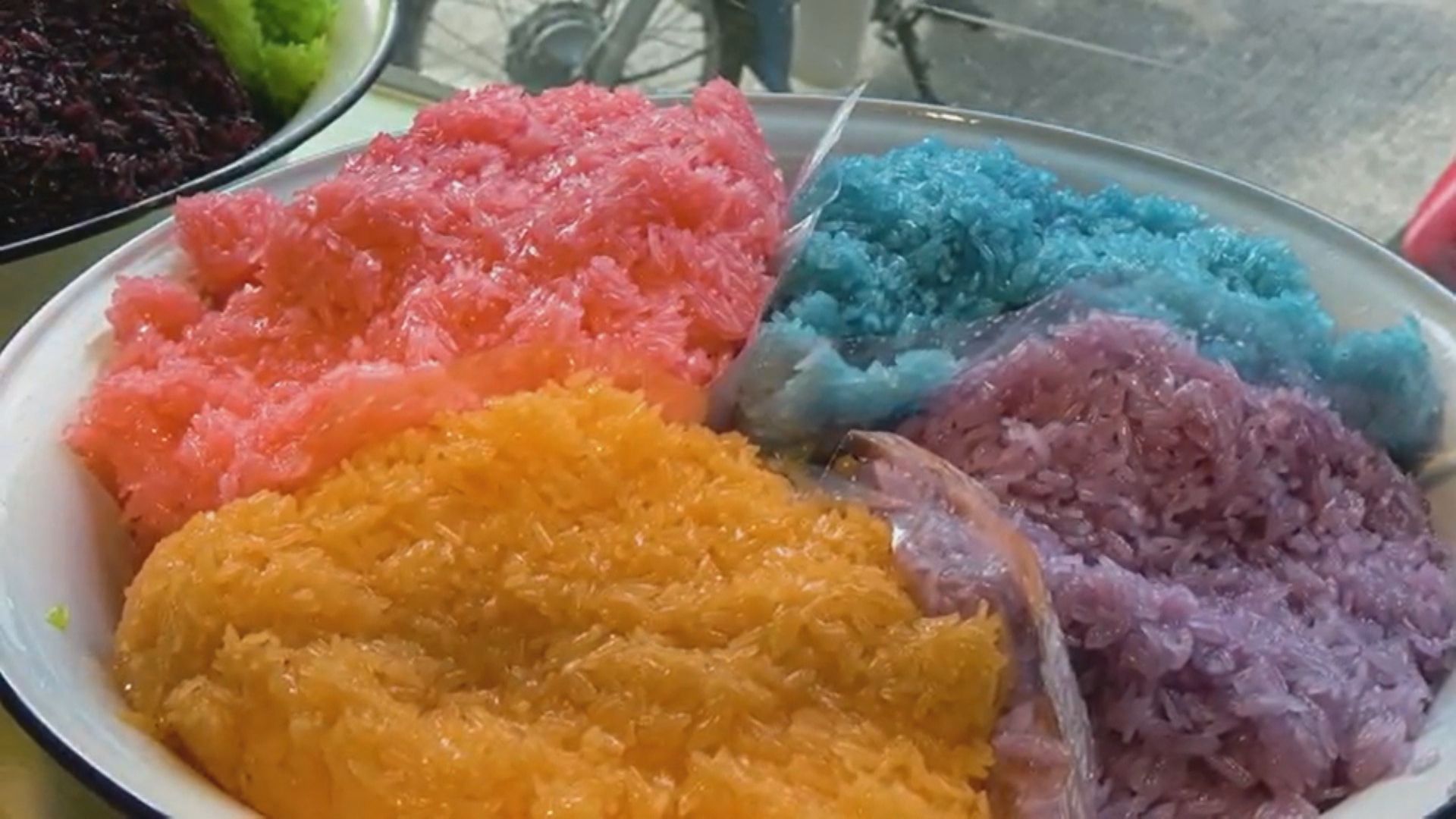 擠在陽台上,遊客心急想拍下眼前美景,底下全是五顏六色的彩虹帳篷,另外還有一顆又一顆七彩繽紛的糯米飯,再配上芒果、淋上椰奶,讓人看了忍不住流口水,這裡是曼谷的拉差達火車夜市,是遊客到泰國必去的景點之一,但現在它卻成了這樣。