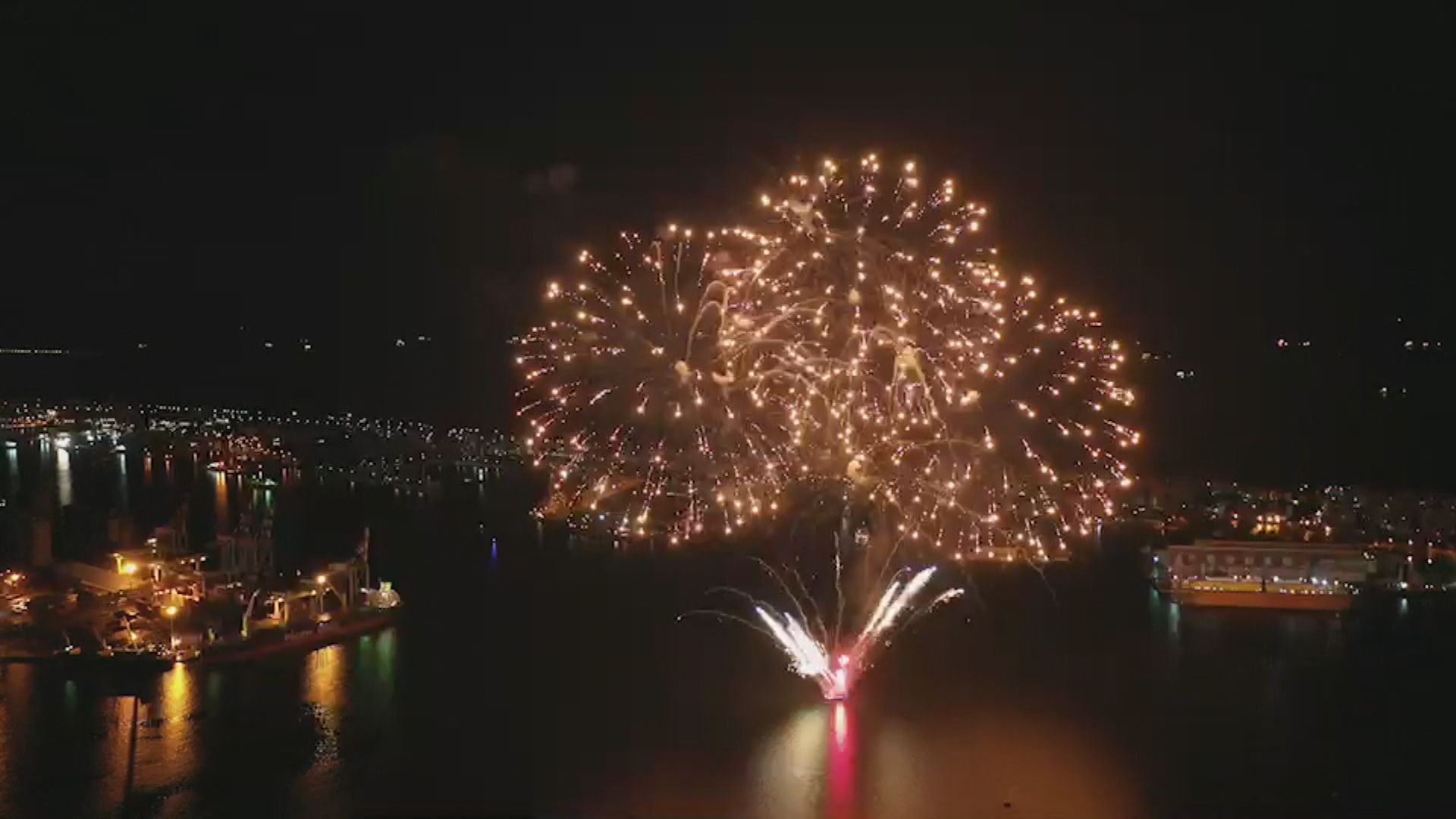 燦爛焰火在港灣夜空綻放,23日晚間,2021年國慶焰火在高雄首度進行試射,180秒、共發射270發。睽違20年國慶焰火,將重返高雄港灣施放,吸引不少民眾觀看。