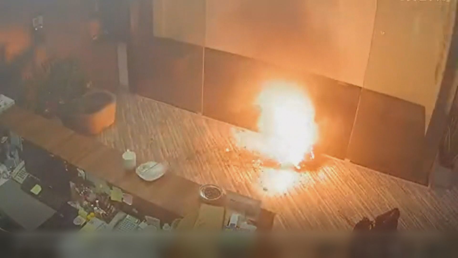 連「碰」三聲,好像在警告這位阿姨,不能再拖了,果不其然,阿姨才剛出大門,黑箱子直接大爆炸,大爆炸引起整間房子煙霧迷漫,還癱瘓了電力,沒想到停電之後爆得更激烈。