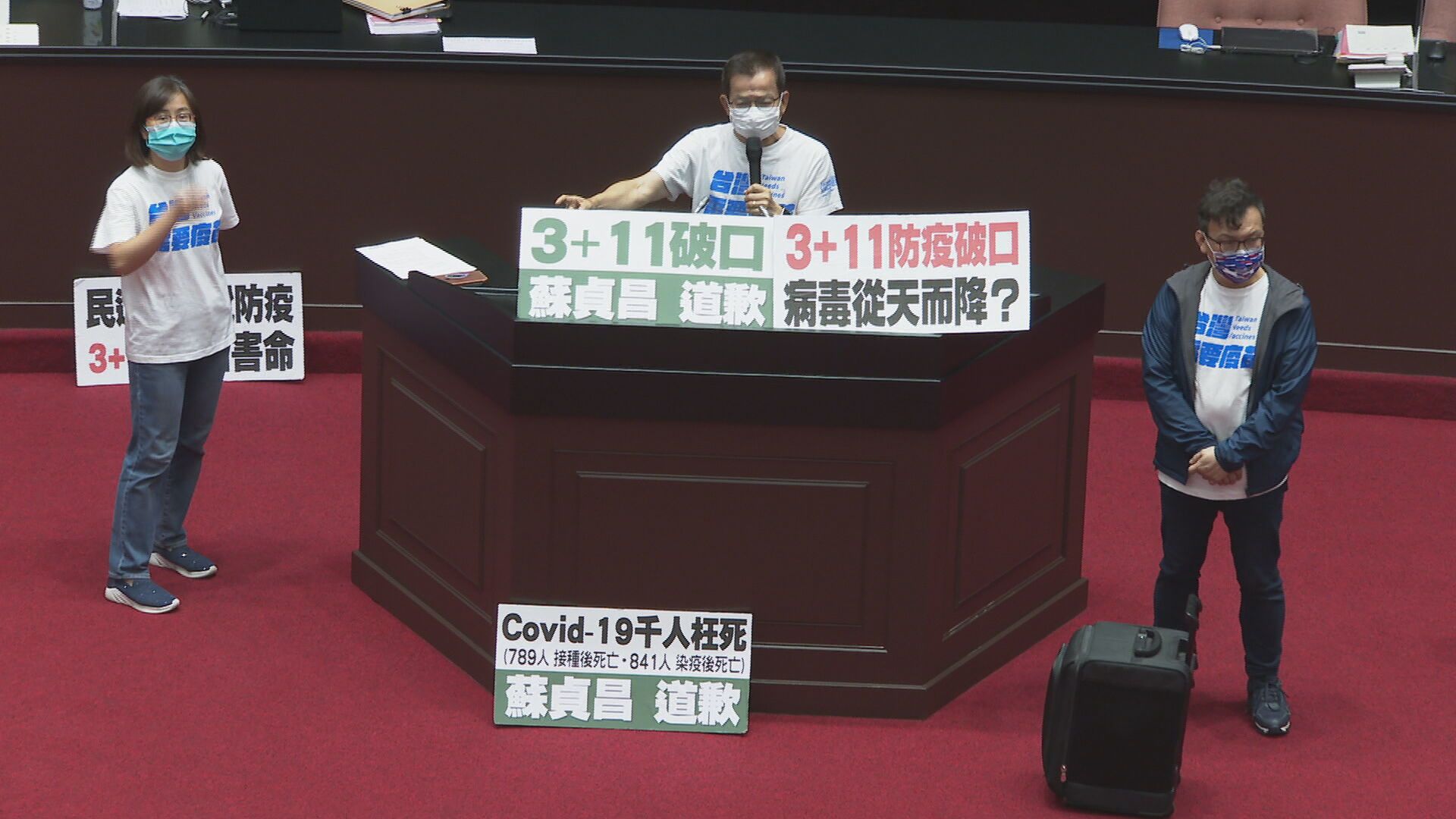 行政院重提3+11補充報告送交立法院,報告裡面,行政院長蘇貞昌為800名染疫死亡民眾道歉,但強調3+11非疫情破口。疫情指揮官陳時中也反問,3+11跟800條人命有什麼關係,引發國民黨不滿,再度強力杯葛議事。