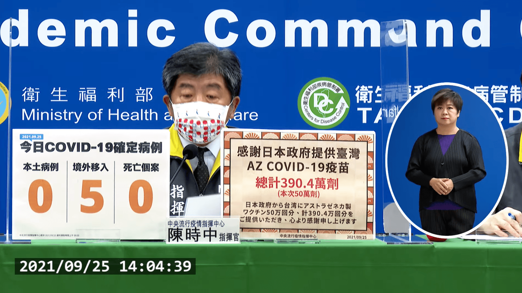 指揮中心表示,新增5例境外移入個案,為3例男性、2例女性,年齡介於10多歲至30多歲,分別自阿拉伯聯合大公國(案16287)、美國(案16288)、衣索比亞(案16289)、菲律賓(案16290)及孟加拉(案16291)入境,入境日介於2021年9月10日至9月23日,皆持有搭機前3日內檢驗陰性報告。