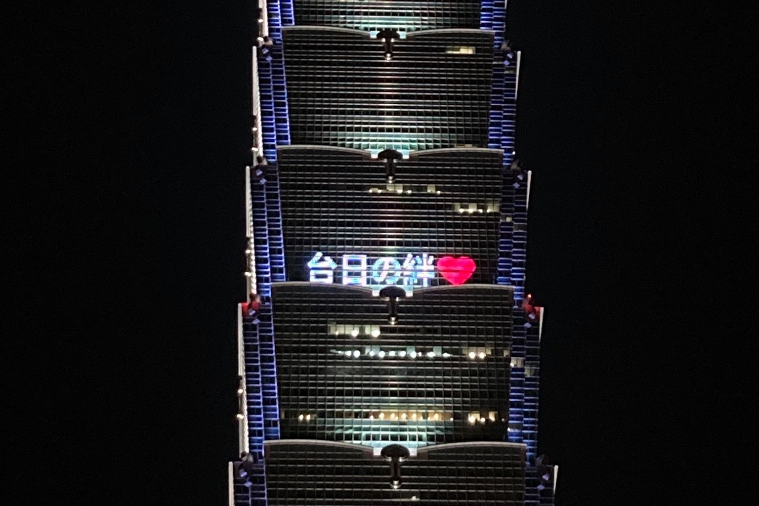 台北101表示,25日晚上6時30分至10時進行點燈打字,感謝日本一路上對台灣的堅定支持,以及疫情期間互相合作、良善循環的台日友好情誼。