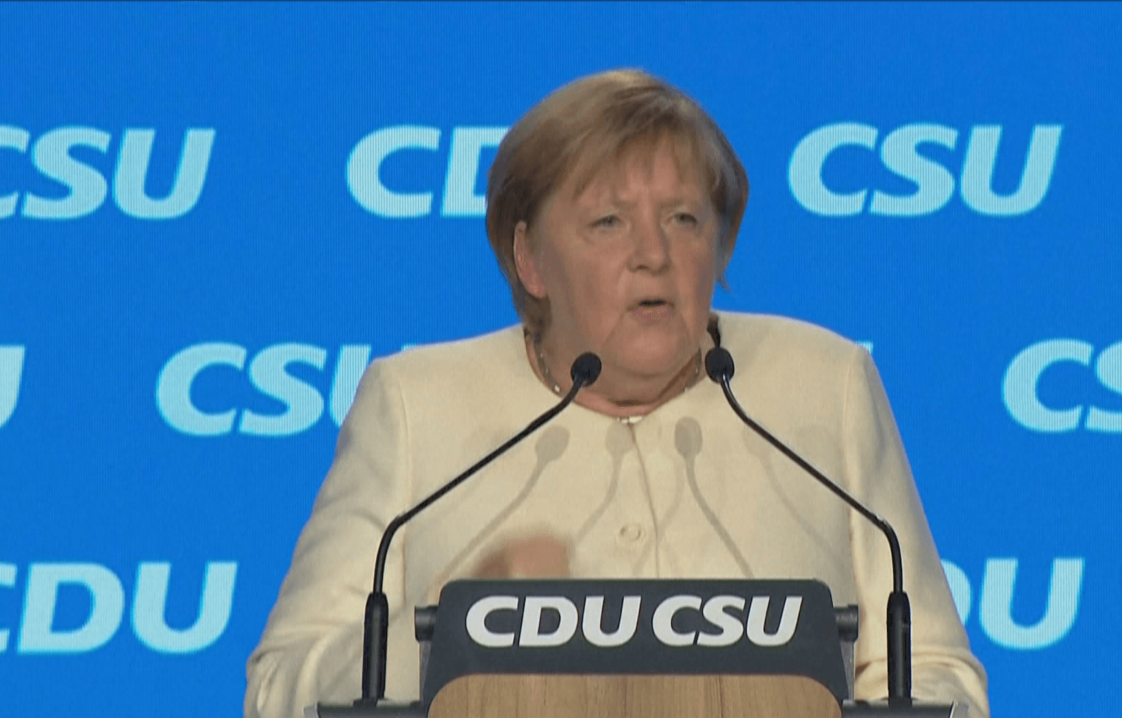 梅克爾還表示:「這就是為什麼,憑著我多年克服危機的經驗,與他人一起,我在這充滿信念,我大聲而且明確地說基民盟和基社盟!」梅克爾說得激動,但其實這一回選戰,基民盟打得非常辛苦。