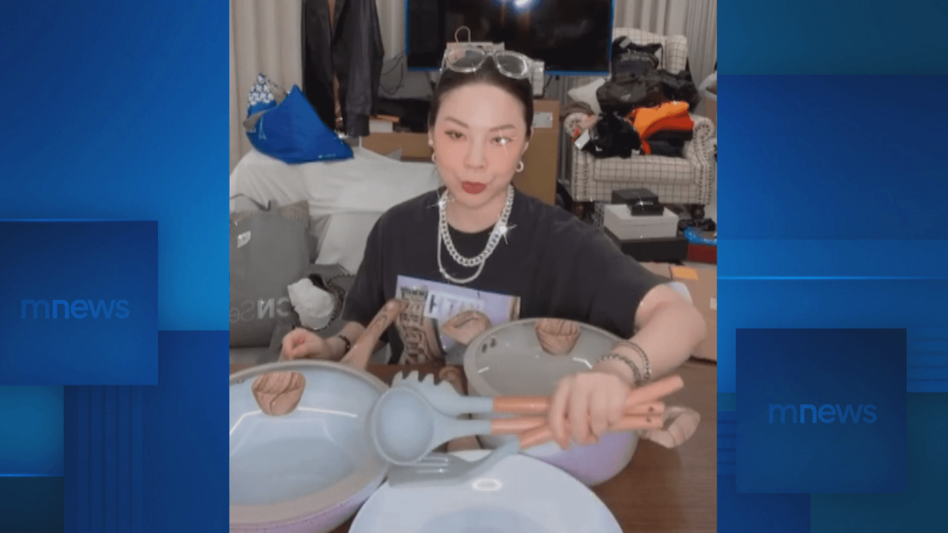其實楊秀蓉的事業版圖,除了經營網拍賣精品之外,還賣高級鍋具,很多藝人都是他的客戶。楊秀蓉直播中銷售商品時,自信發豪語:「5千元賣給你三組加一,阿蓉發瘋我要把它清掉。」不甘名譽受損,決定硬起來提出告訴,再開直播公諸於世,「網拍天后」要展開,捍衛商譽大作戰。