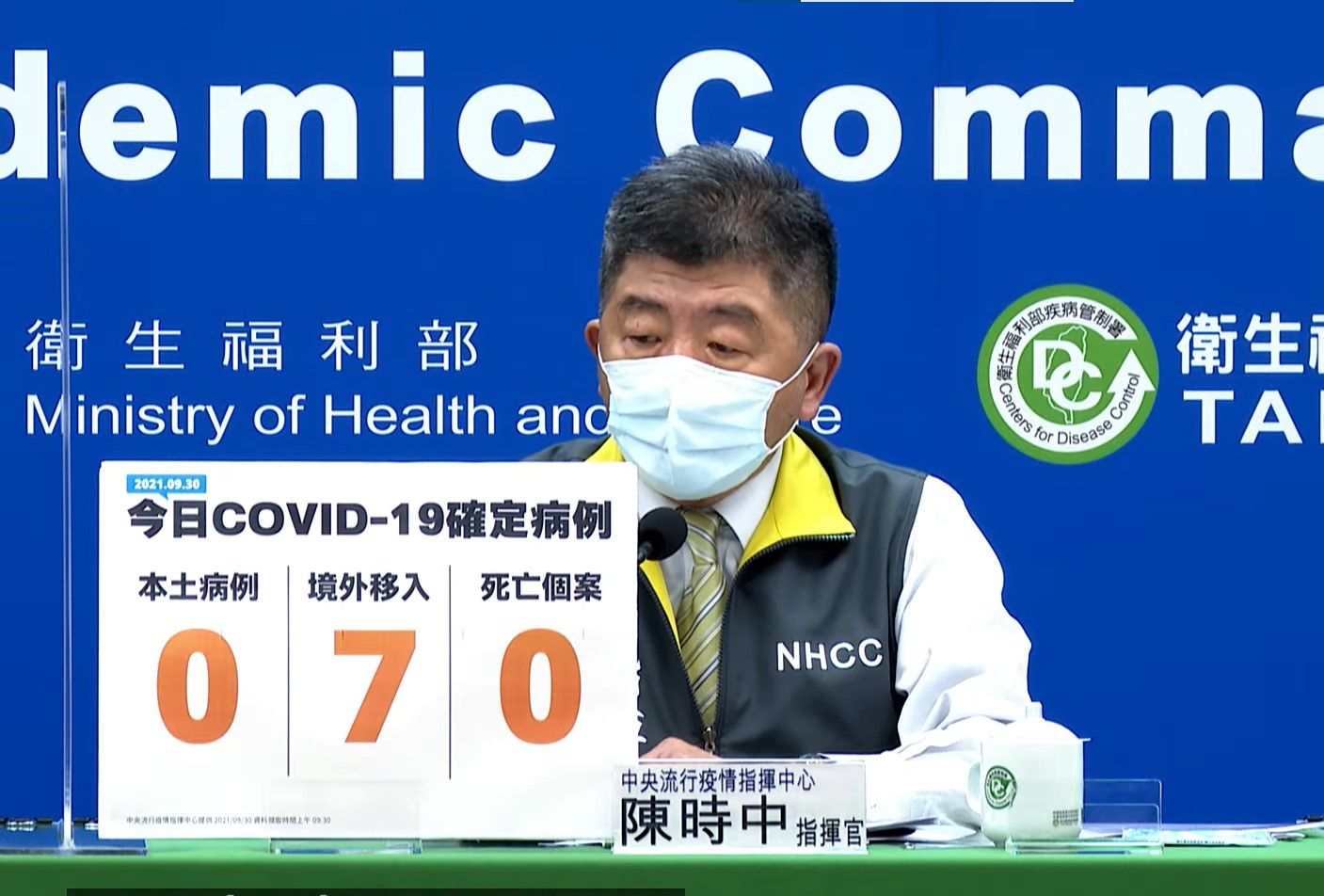 中央流行疫情指揮中心說明30日最新疫情,並宣布20歲以上民眾打高端免預約。(翻攝自疫情指揮中心YT直播)