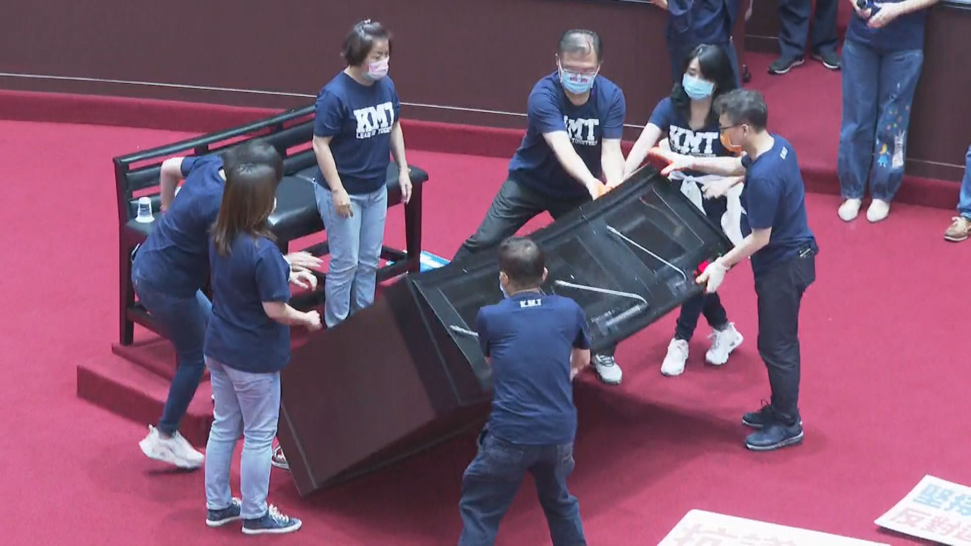 「砰!」一聲巨響,國民黨立委直接推倒備詢台,要讓行政院長蘇貞昌無法備詢。國民黨立法院黨團書記長陳玉珍:「蔡英文說,這個政府,如果第一次你聽不到(人民聲音)時候,你可以拍桌,再聽不到時候你可以拍桌,第三次還是聽不到時候,我們就會翻桌。」