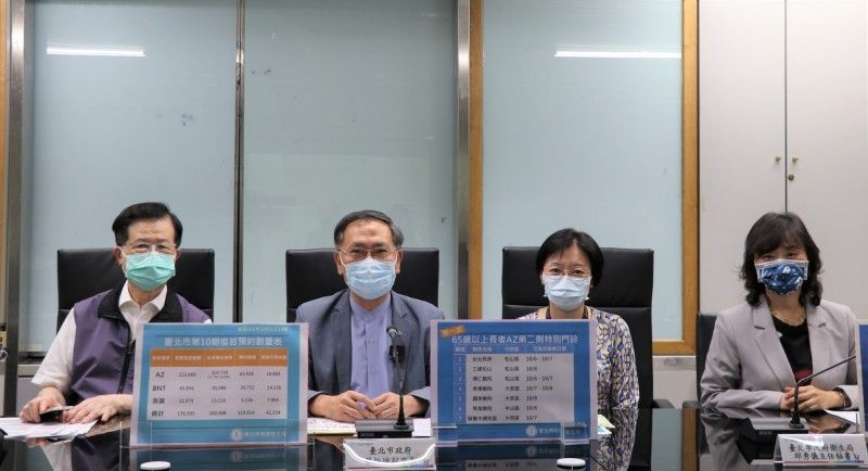 台北市衛生局5日召開記者會,針對中央第10輪疫苗接種規劃,65歲以上長者由地方政府造冊安排,蔡炳坤表示,已經協調台北長庚、三軍總醫院松山分院、博仁醫院、秀傳醫院、國泰醫院、馬偕醫院、台北市立聯合醫院中興院區等7間醫院,從10月6日至8日提供65歲以上長者接種AZ第二劑的特別門診。