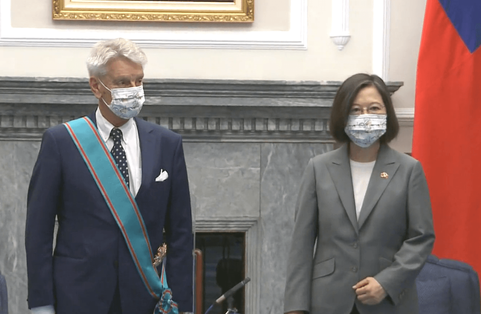 7日一早9時30分,法國參訪團進入總統府,總統蔡英文頒授特種大綬卿雲勳章給法國參議院友台小組李察主席(Senator Alain Richard),表彰他對台灣的支持,以及對促進台法友好關係的貢獻。蔡英文回憶道,2018年李察主席訪台時恰逢花蓮發生震災,李察特別指定要到花蓮訪問,深刻表達對台灣的關心,這次李察再次來訪,蔡英文表示:「就像我們在法國的家人回來看我們。」
