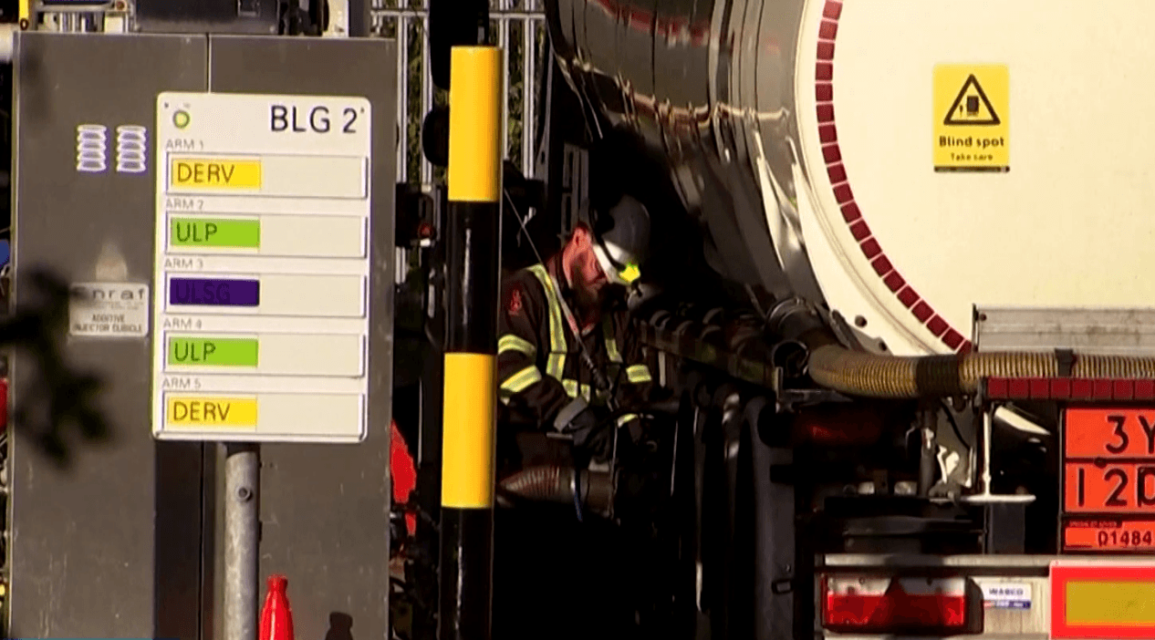 一台台油罐車把汽油送到加油站,仔細一看,坐在上面的居然是一位身穿迷彩服的軍人,某些駕駛還需要有人在旁指導。英國缺司機的加油之亂似乎還在延燒,甚至還有加油民眾抱怨:「這是我正在嘗試的第3個加油站。」