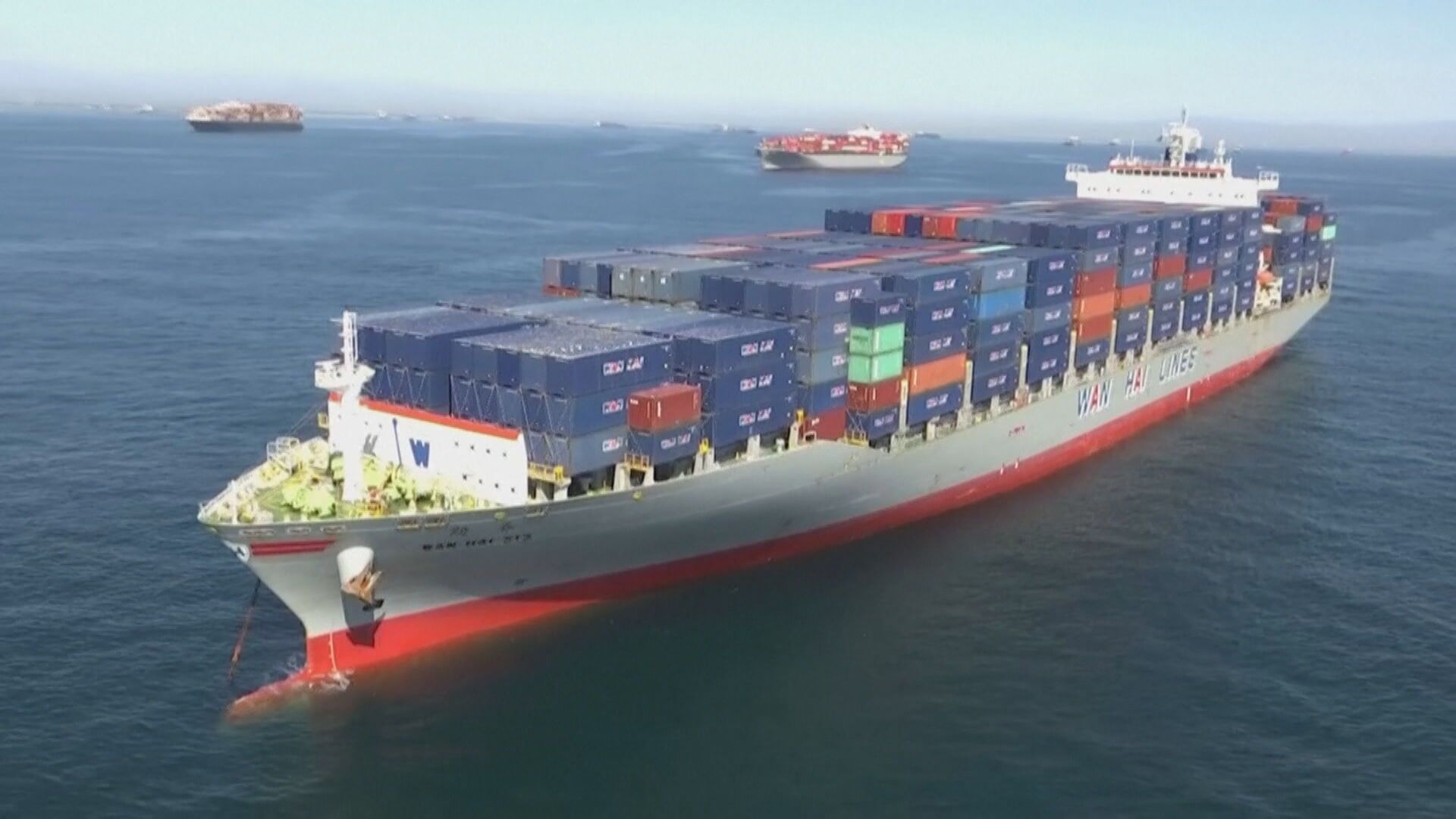 海面上一艘艘貨櫃船急著出港,由於全球供應鏈受擾,加上塞港及缺工等亂局,導致交貨延誤十分嚴重。洛杉磯港執行董事沙洛卡表示:「我們每天仍在打破紀錄,這就是我們為什麼持續運送如此多的貨物,但還有更多的貨物,我們必須繼續努力。」
