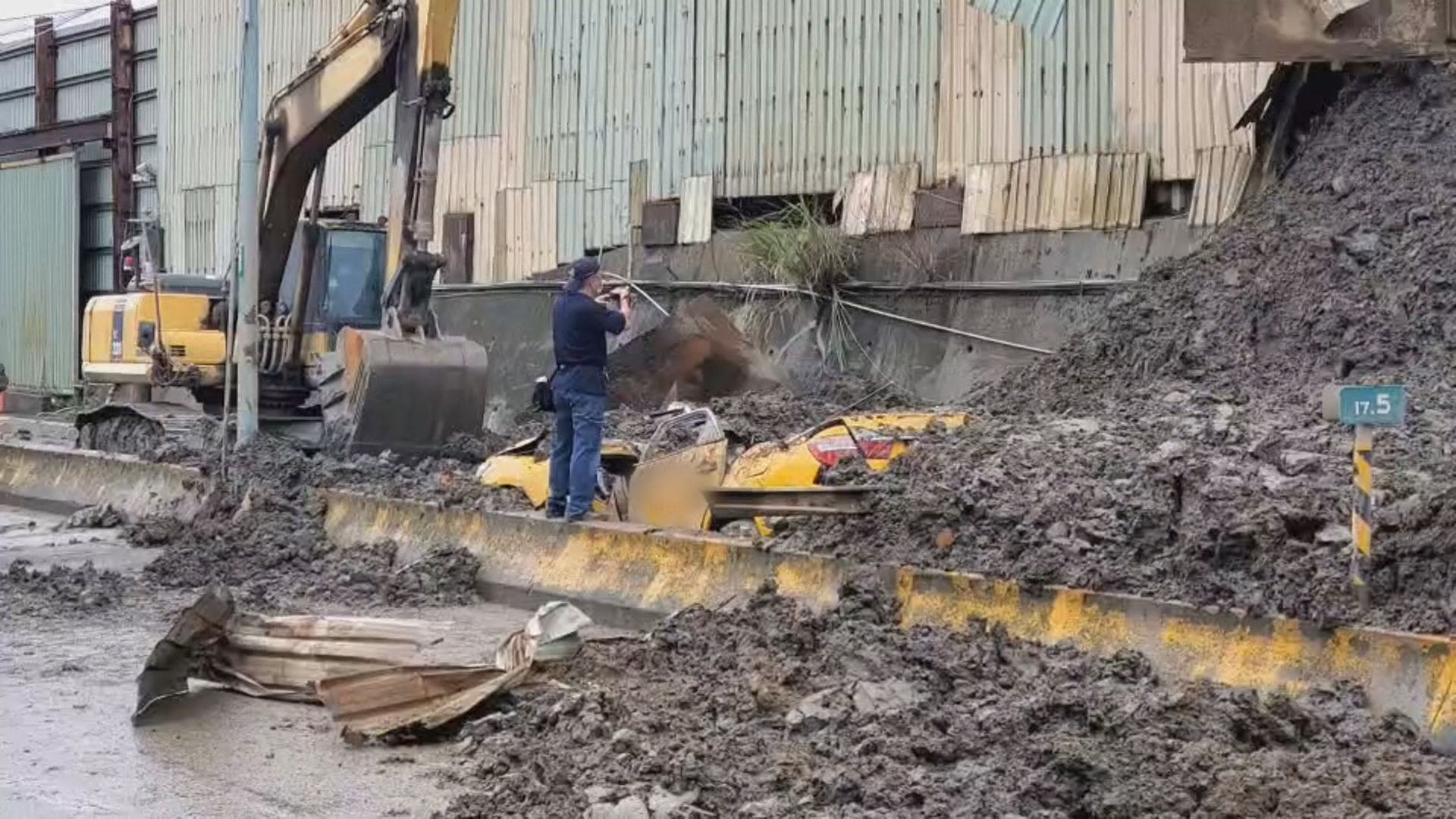 整條馬路路面,全被砂石掩埋,上方砂石廠攔阻堆放砂土的鐵皮牆,破了大洞,大量砂石就是從這裡,傾瀉而下。12日凌晨4時左右,一台計程車剛好經過遭活埋,司機救出時,已經明顯身亡,到底是天災還是人禍,釀成了這起慘劇。