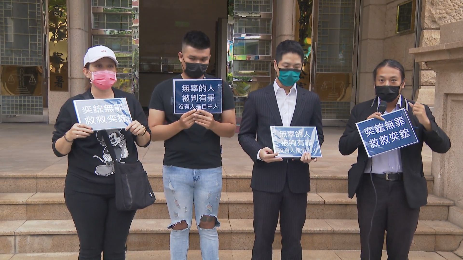 由母親跟律師陪同,站在最高檢察署門口高喊口號,希望司法機關能還他清白,因為這名黑衣青年,被控殺人罪,遭判刑8年,即將入獄。