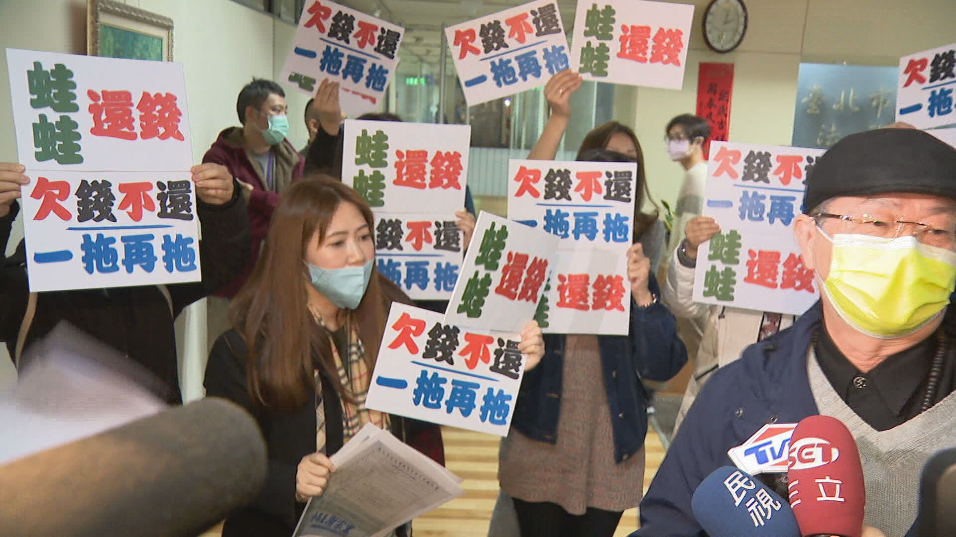 早在2021年1月,台北市府舉辦協調會,大批受害者,在場外高舉看板抗議,要蛙蛙文創還錢,副總經理梁弘正低調進入會場,被民眾逮個正著,雙方爆發口角衝突。