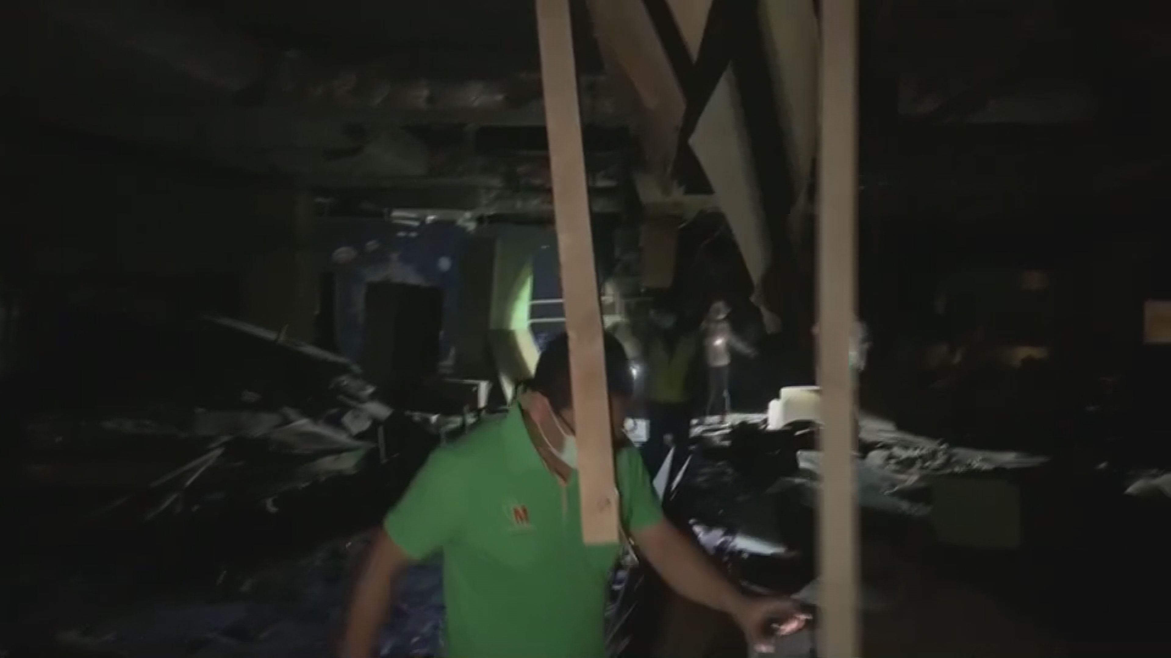 走下曲折樓梯,一片昏暗,加上狹長走廊,兩旁套房還有大門用鐵鍊拴上,套房裡還堆滿雜物。大樓地下室一片漆黑,工作人員拿著手電筒,地上全是廢棄物,還有地方的水管長期漏水,積水布滿房間。這裡就是14日發生奪命火警的高雄城中城大樓,事發前的廢棄模樣。