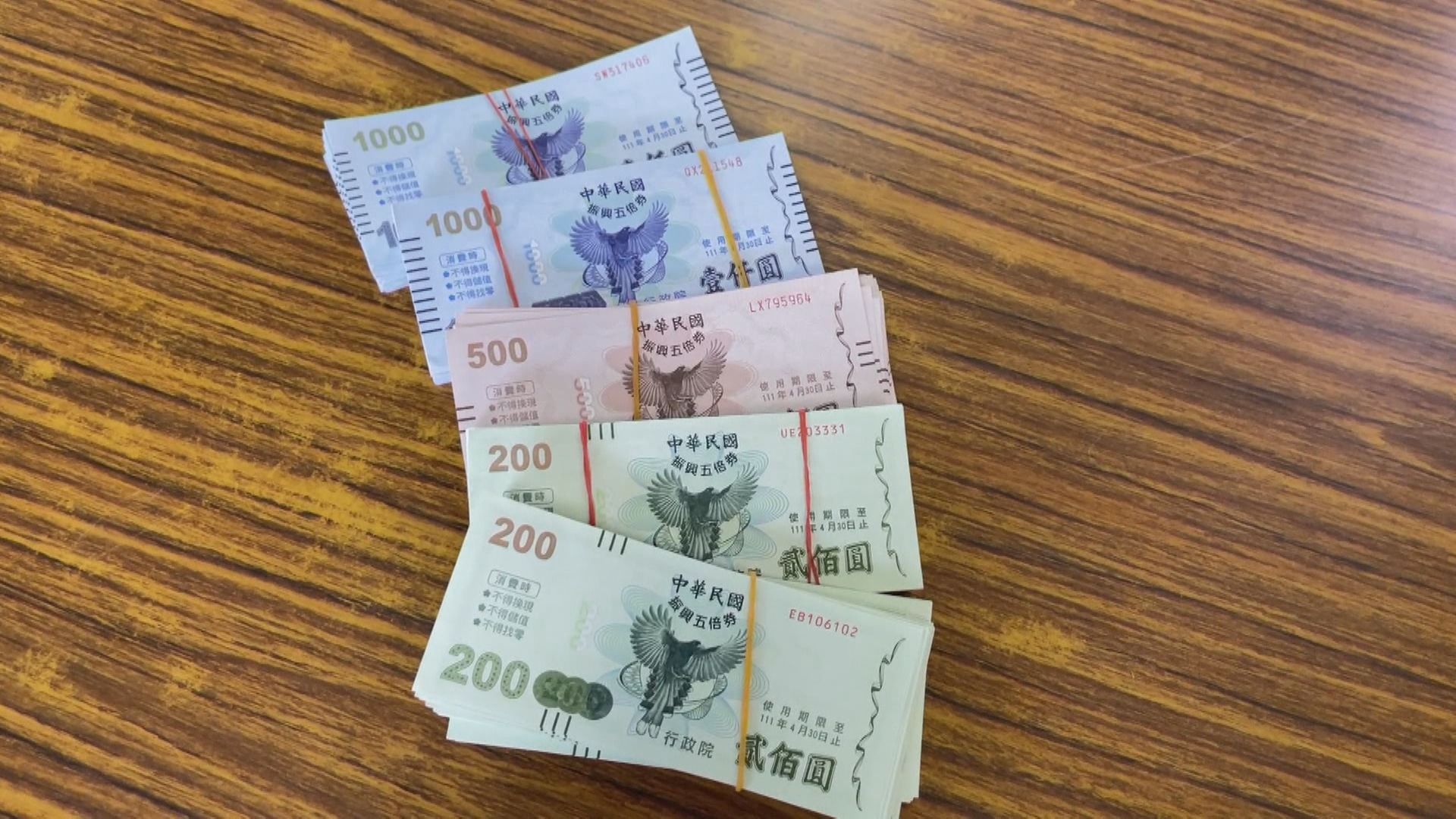 5倍券8日開始發放,南投縣竹山紫南宮已收到大約新台幣30幾萬元的5倍券,數量辦公室都快放不下了,而附近商家也受惠,在紫南宮旁的彩券行也收到新台幣10幾萬元的5倍券。