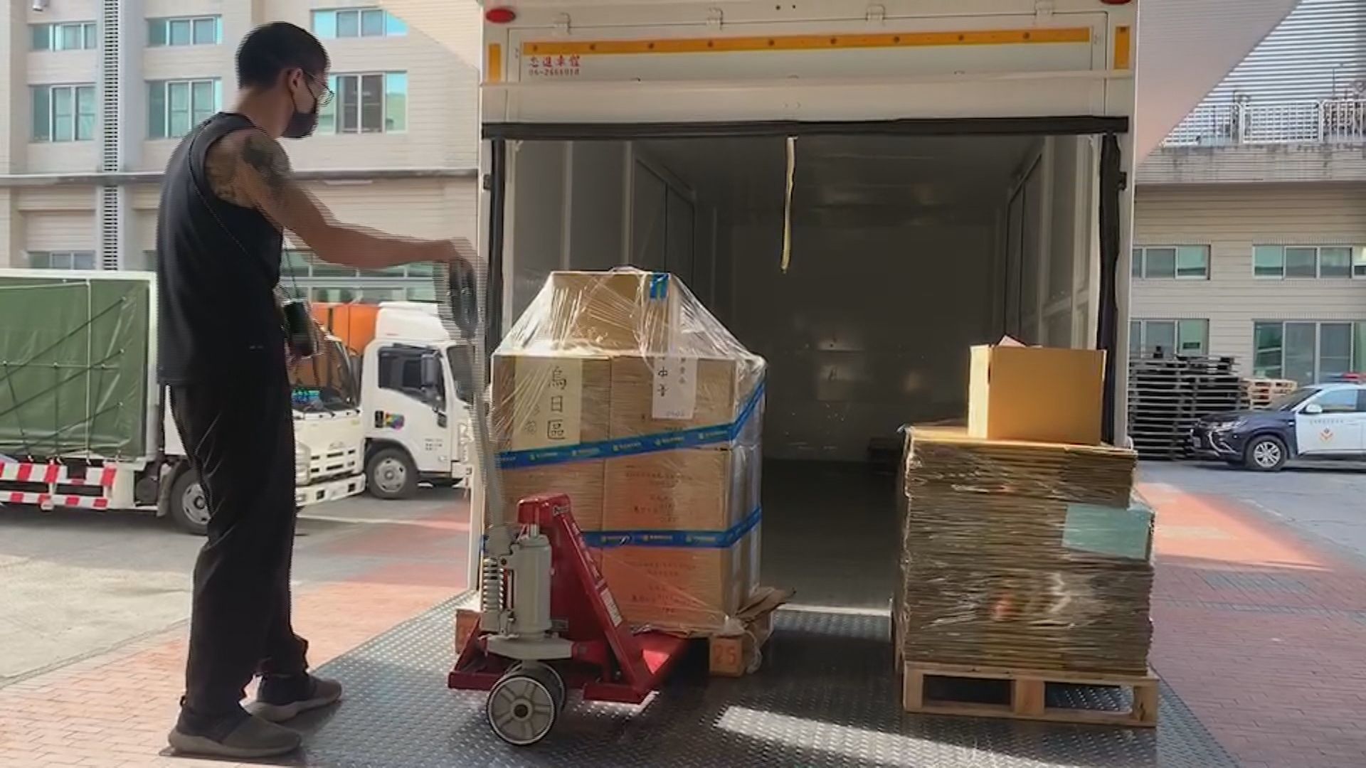 選票裝箱,塑膠封膜,接著搬運上車,藍色膠帶充當封條,貼滿車門。在警車開道護送下,陳柏惟罷免案選票,21日完成印刷,開始分到臺中市第2選區5個區公所。