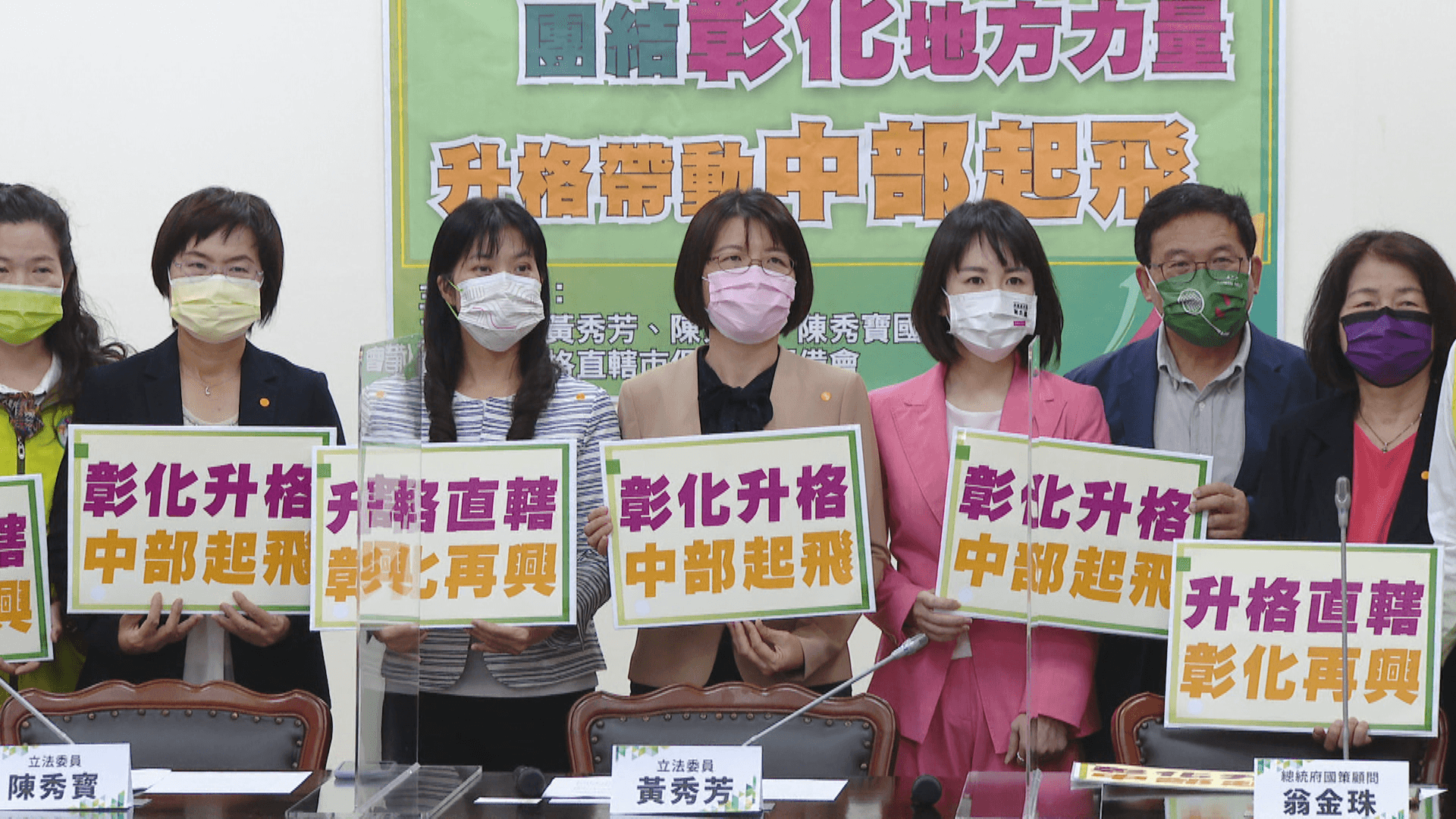 呼喊口號「升格直轄」、「彰化再興」,民進黨彰化縣黨部成員特地北上立法院,找來跨黨派立委、專家學者座談,喊出讓建縣將屆滿300週年的彰化縣,早日完成升格改制。