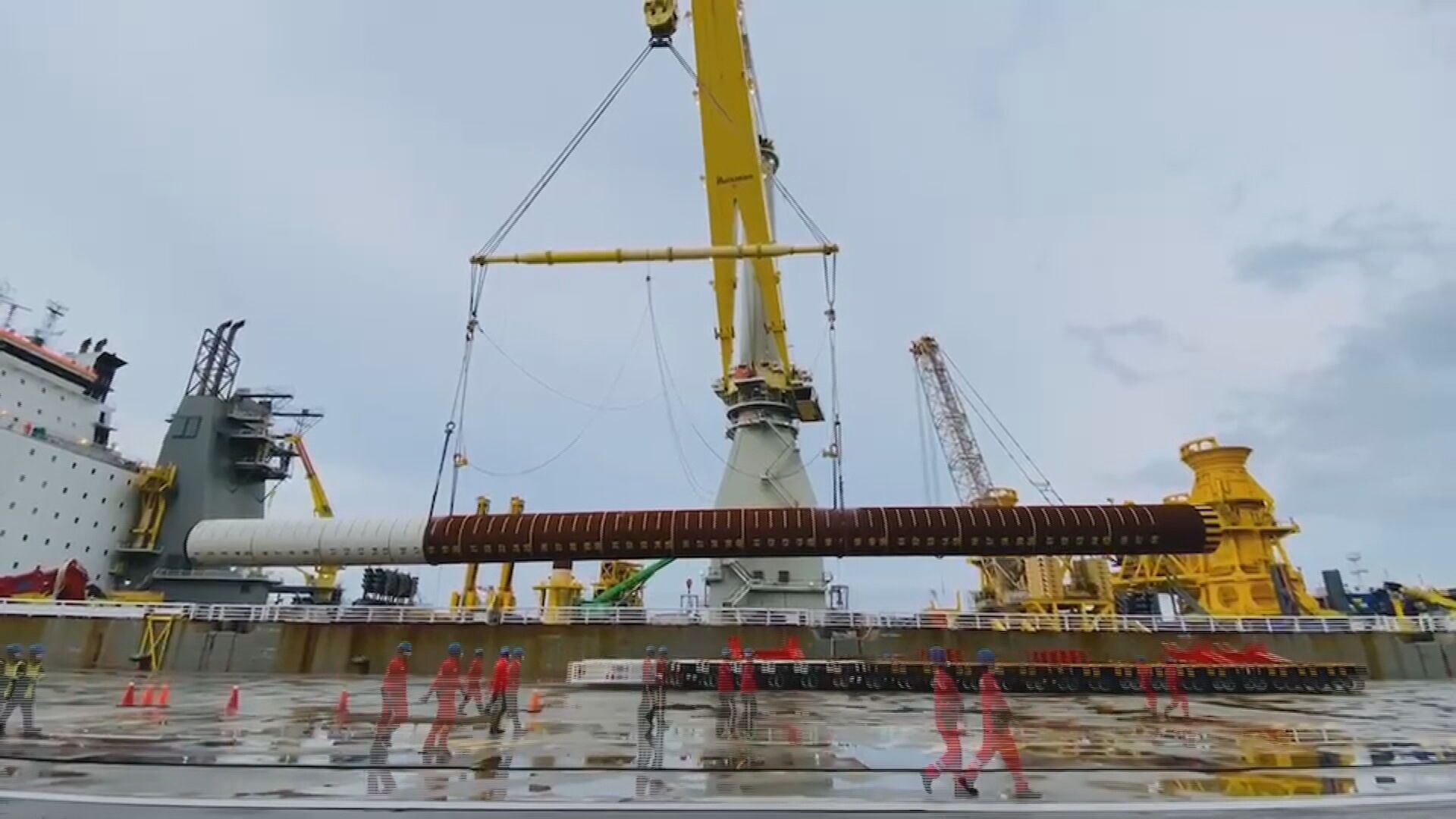 320噸的水下基樁被吊起,從高雄港送往彰化外海,展開離岸風電設置作業丹麥哥本哈根基礎建設基金,也就是CIP,今年原本要在這裡設立10支風機,力拚在10月底前併網,為台灣供電。不過現在進度得延到2022年,主因卡在人。