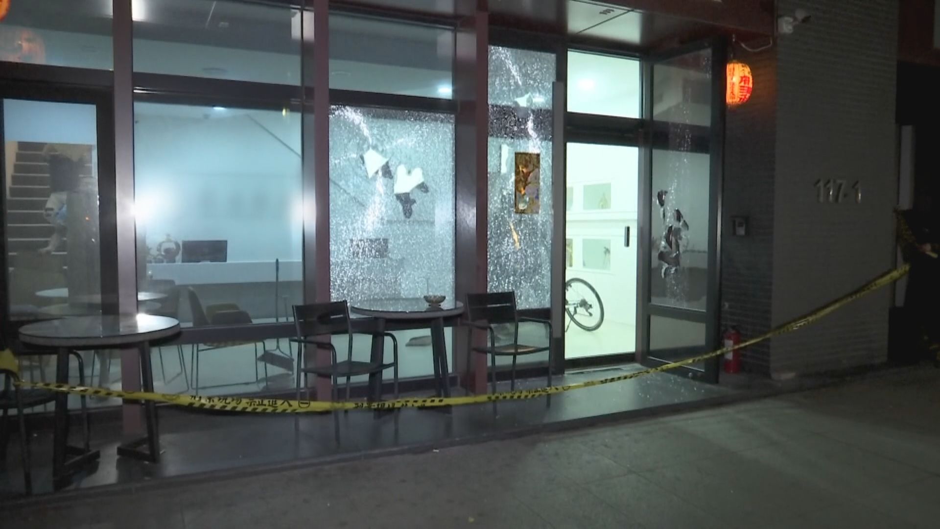 警方獲報,1樓店面被人砸毀,趕緊拉起封鎖線,因為辦公室外牆玻璃,被砸出好幾個大洞,連門也被刮得亂七八糟,鑑識人員到場仔細勘驗,因為被砸的還不是普通店家,而是小有名氣的直播公司。