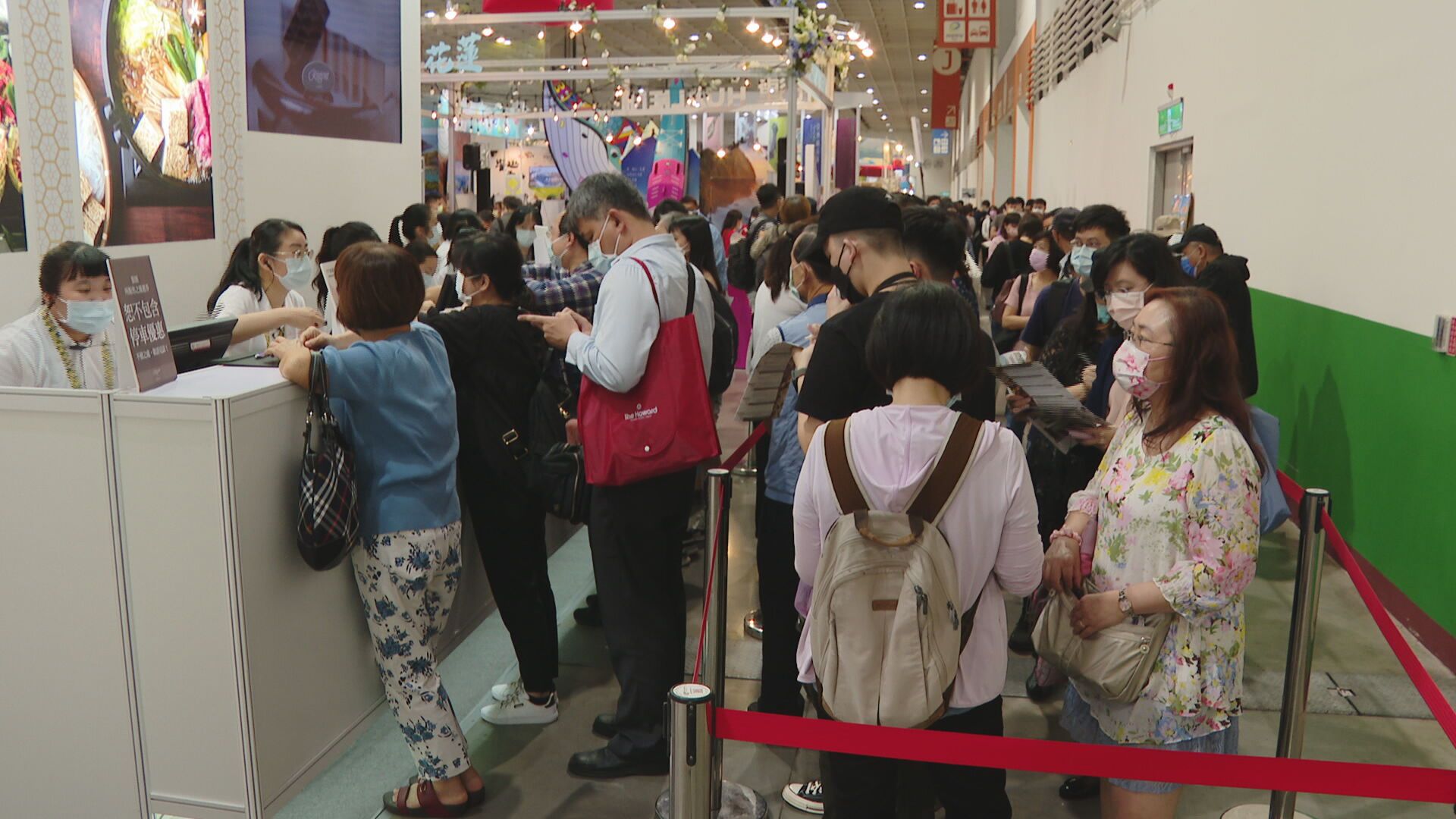 一年一度的台北國際旅展,讓你有吃、有玩,還有得大排隊。參觀旅展民眾:「我買了栢麗廳平日下午茶雙人券。」「我等了40分鐘了,對啊,剛剛美福更誇張,美福我等了50分鐘。」
