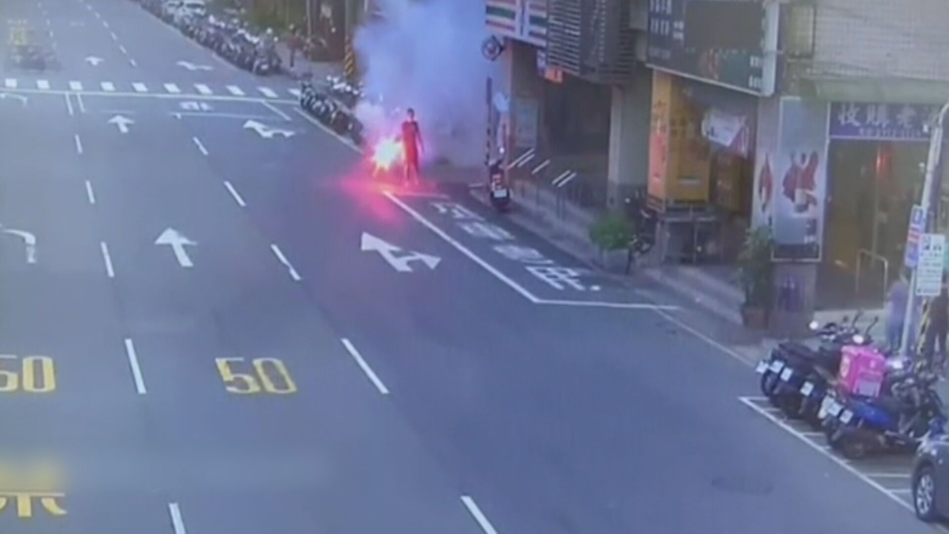 大馬路上,男子當街點燃信號彈,不停揮舞還大聲咆哮,整條街道火光四起,還冒出濃濃白煙,還有人邊拿信號彈邊騎車,甚至開直播挑釁,昏暗街道瞬間被點亮,後方騎士看了這景象不敢再往前騎,只是鬧事分子拿著信號彈橫行,難道無法可管嗎?