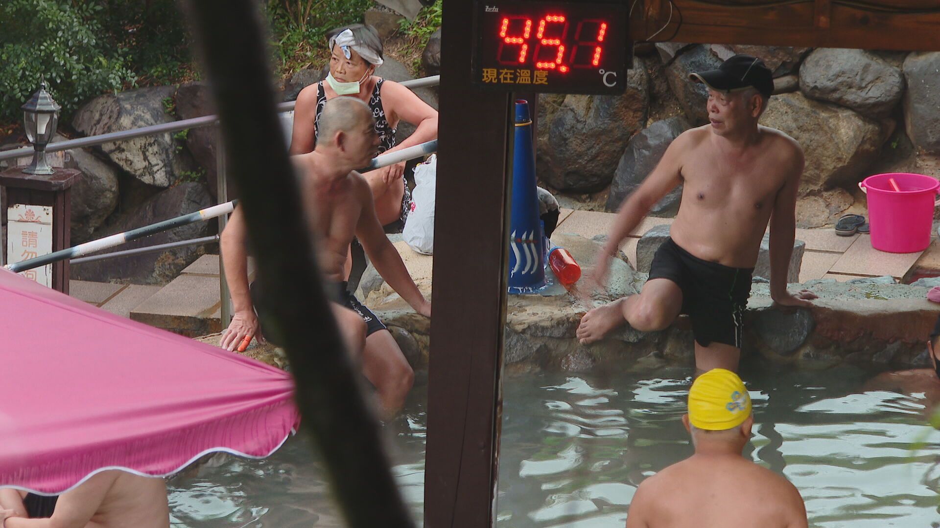 儘管天空滴滴答答下著雨,也不影響泡湯興致,長輩們一大清早就來享受溫泉浴。有泡湯民眾表示:「泡一泡比較不會冷,衣服穿薄的就好不用穿厚的。你看今天下雨還是那麼多人,等一下八點你會看到大排長龍!」浸泡在暖呼呼的溫泉裡,不怕風雨,更不怕冷空氣來襲。