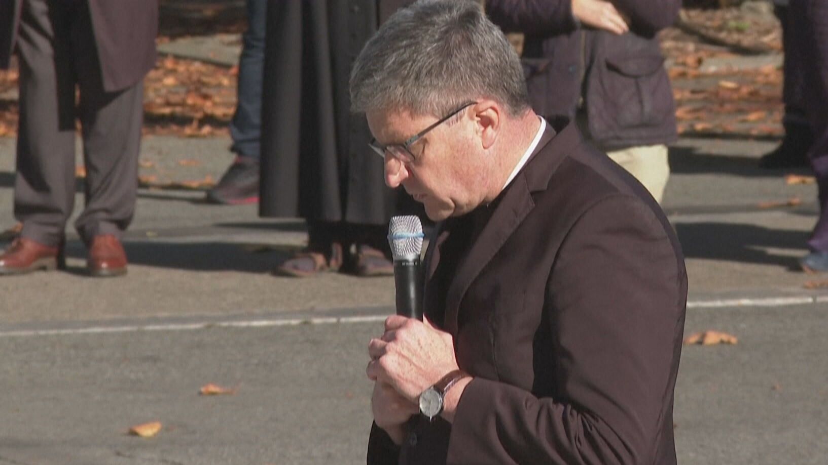 鐘聲響起,眾人神情肅穆,法國主教團會議主席博福,特率領主教團高階成員參加紀念儀式,在天主教聖地露德聖母堂前下跪懺悔,博福禱告:「上帝!我們怎麼敢稱呼祢為我們的天父,請原諒我們!」