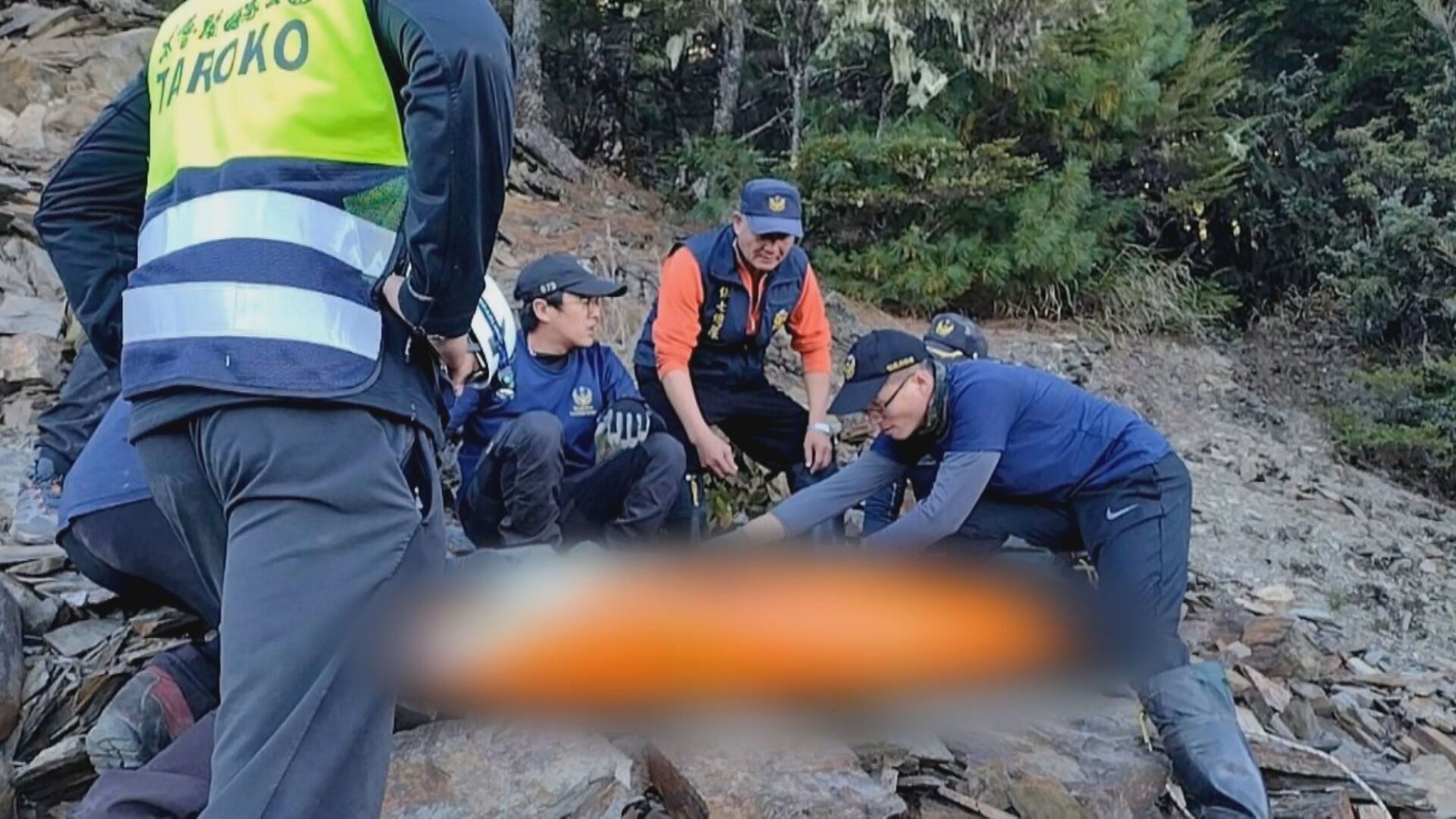 搜救人員拉著繩索,將墜落邊坡的傷患救上來,空勤直升機降下繩索吊掛登山客,但受傷登山客已經失去呼吸心跳,送醫後傷重不治。
