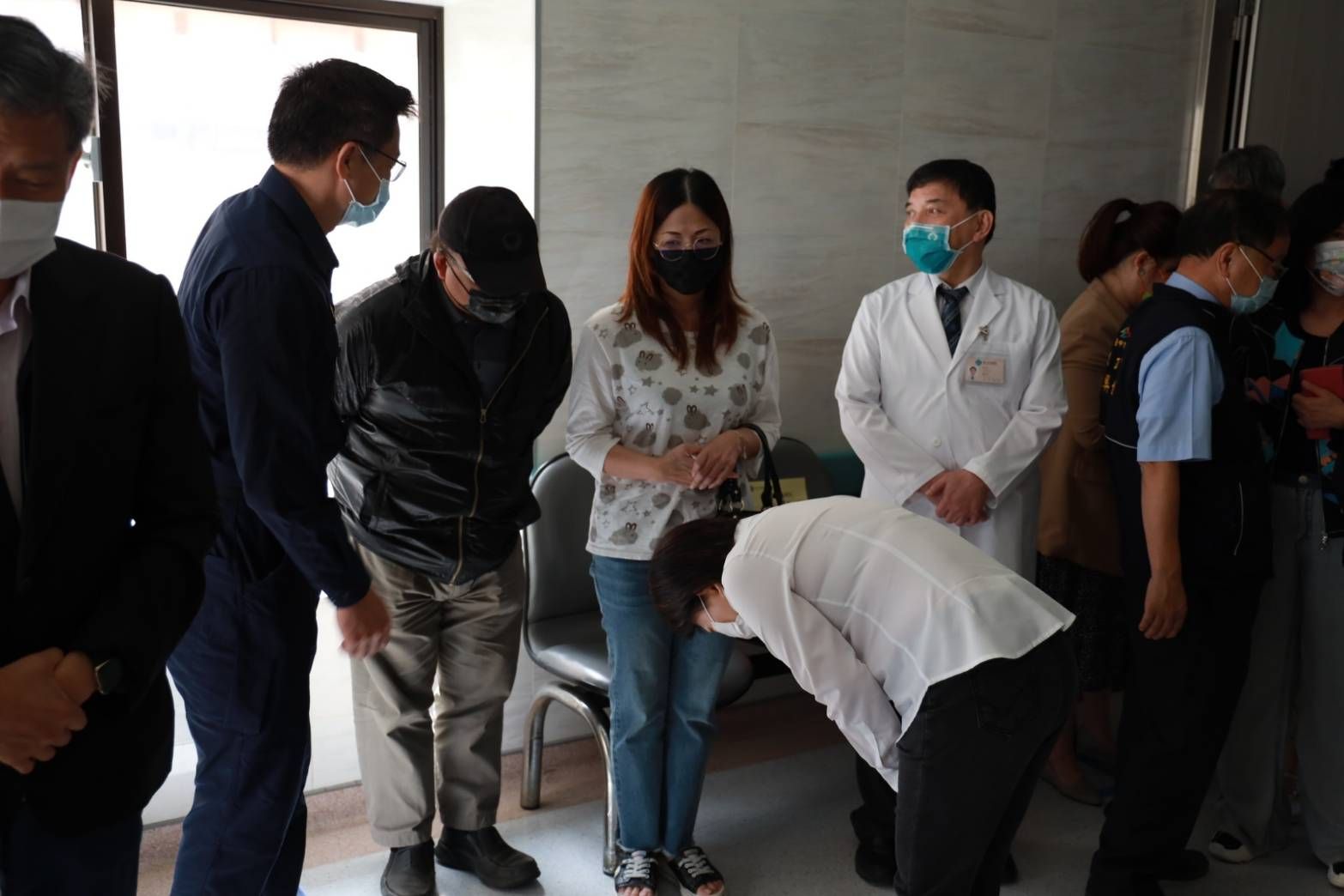 盧秀燕一見到家屬即深深鞠躬,表示「真的非常抱歉!」並致贈慰問金及水果禮盒安慰家屬;她表示,看到孩子受傷真的很難過,也覺得很抱歉,特別代表台中市政府前來關心,據了解傷者是有禮貌的好孩子,感謝醫院團隊盡心照顧,祝福傷者早日康復。