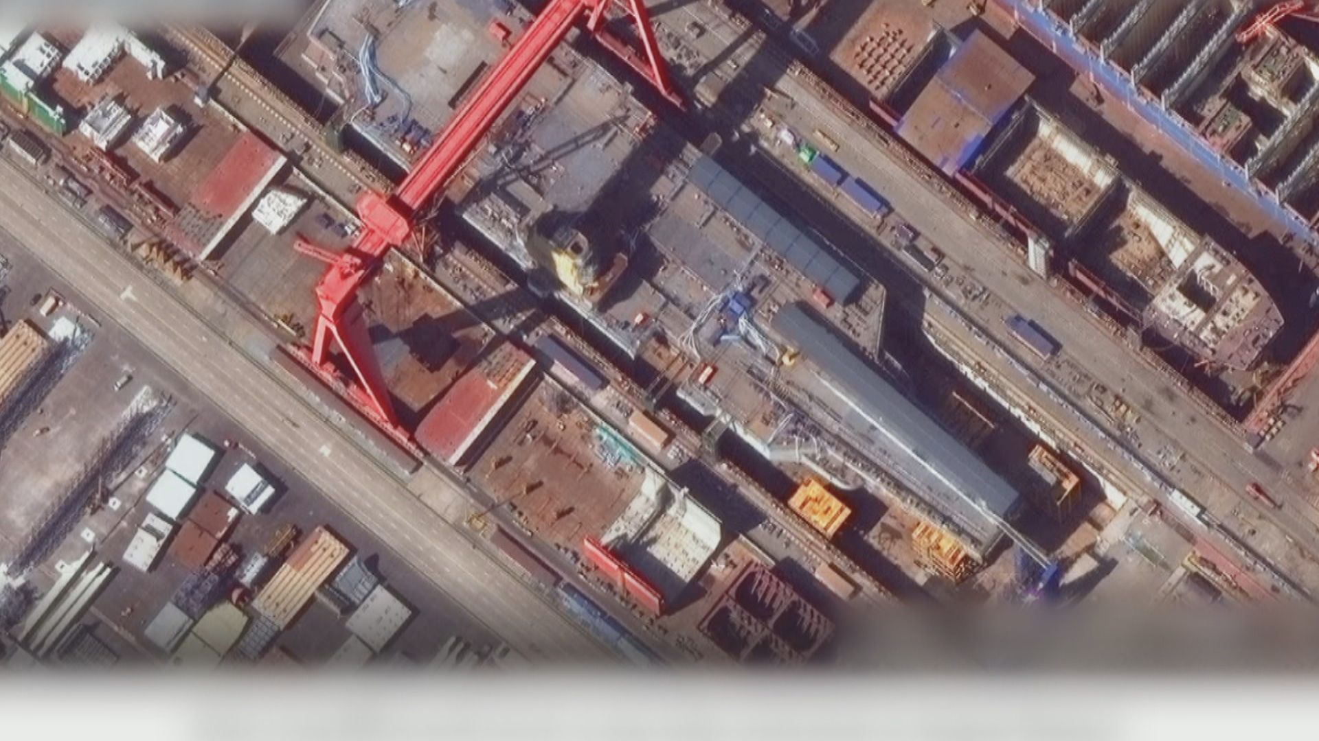 《CNN》主播表示:「中國正在以戲劇性的速度增強軍事實力,這張衛星圖顯示,這艘航母最快明年就可以下水。」