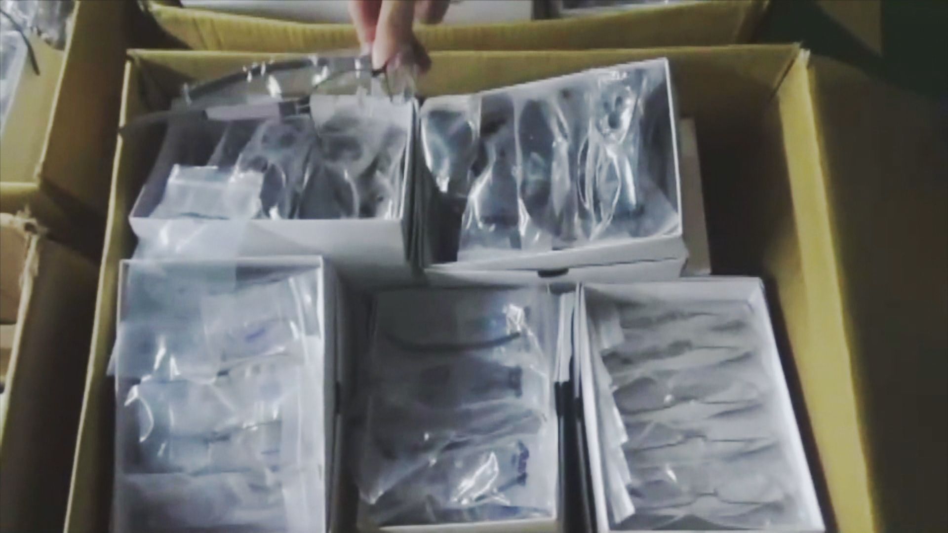 走進倉庫擴大搜索,業者看起來很心虛,因為他們涉嫌賣假眼鏡,被警方逮個正著,這些名牌眼鏡從外觀看來,就像是一般高檔鏡框盒,但警方查扣的這些都是日系運動品牌美津濃眼鏡的仿冒品。