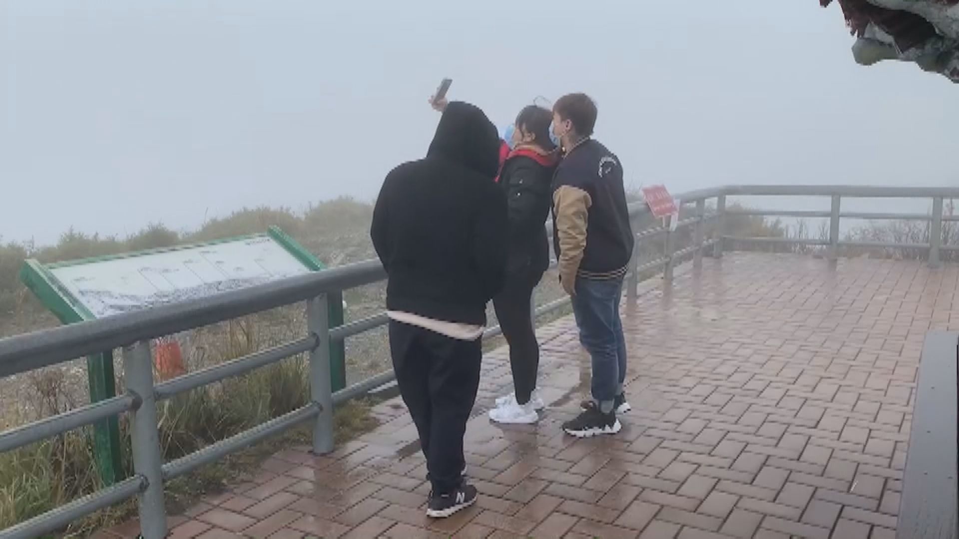 袖子上滿滿冰晶,南投的武嶺10日氣溫大約15度,雖然沒有下雪,但在早上9點40分,下起了約3分鐘的冰霰,民眾拿起手機開心留影,但其實前幾天就有遊客上山等雪,結果撲空了。民眾表示:「知道這個禮拜會變冷,濕氣也會變重,本來想說會看到雪。(記者:結果上來狀況怎麼樣?)無。」
