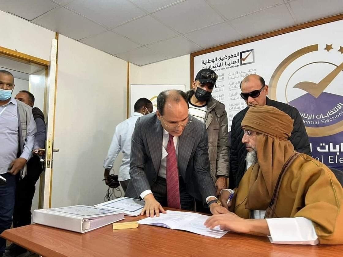 據《中東之眼》(Middle East Eye)報導,利比亞選舉委員會證實,格達費次子、現年49歲的塞夫已在當地時間14日登記參選預定下月24日登場的總統大選,加劇國內緊張情勢。社群媒體上也流傳著一張塞夫戴著眼鏡、身穿棕色長袍與頭巾,在利比亞南部城鎮薩巴(Sebha)的選務登記中心簽署文件的照片。