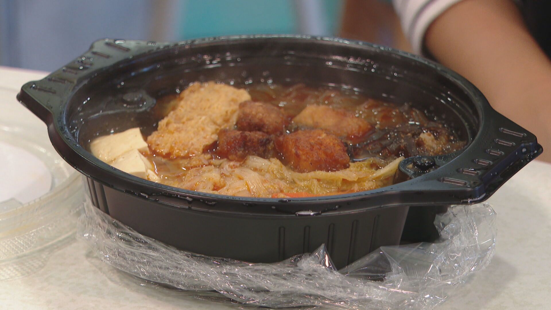 熱騰騰白煙冒出,仔細一看有炸鱸魚塊和豆腐、白菜等砂鍋菜,再嚐一口香辣醬熬製的高湯,口感微辣鮮甜,冬天吃火鍋暖心又暖胃,看準天冷商機,超商業者與知名餐飲業者,林聰明砂鍋魚頭合作,推出個人鍋物。
