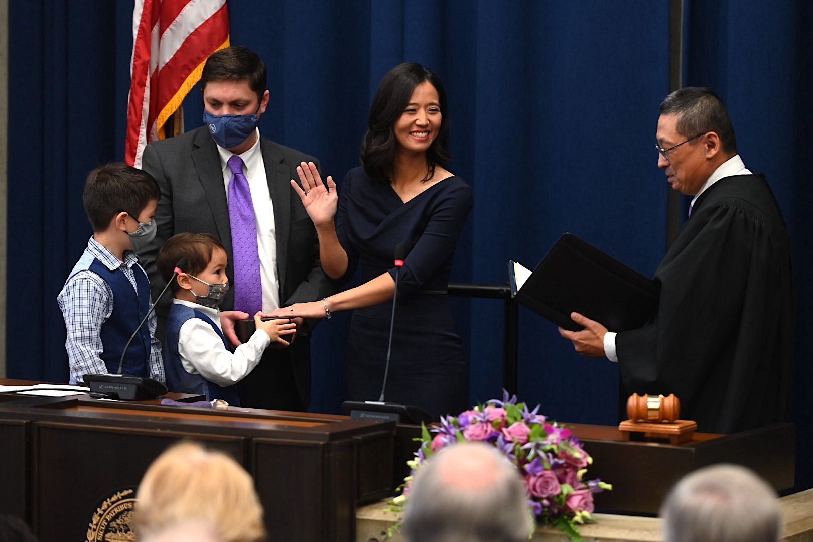 吳弭(Michelle Wu)在丈夫佩瓦斯基(Conor Pewarski)、兩個兒子陪同下,在當地時間16日中午進行就職儀式。吳弭提到,她擔任市議員,初次踏進波士頓市政廳時,她覺得自己很像隱形人,也讓她想起自身移民家庭試圖遠離這種地方。