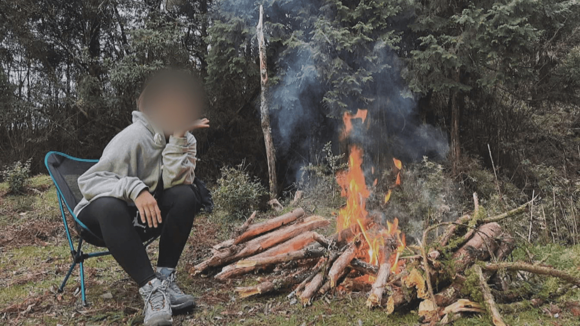 拍下營火照片、大家圍著取暖,氣氛好溫馨,這時再配上一把吉他,來點音樂,在山上露營的感覺好愜意,只是問題來了,這裡是百岳之一的南投「郡大山」,山區不能生火,照片是今年10月底拍攝,上傳的人還是一名女警。