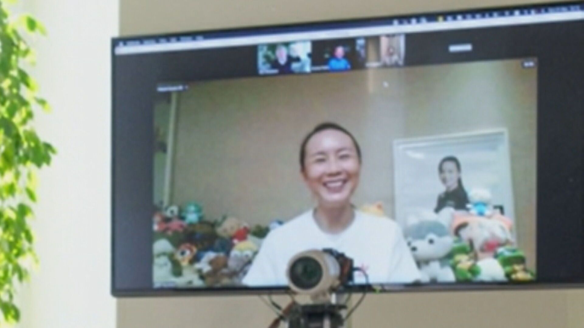 臉上掛著大大笑容,彭帥再次現身報平安,這次是和國際奧委會主席巴赫,2人視訊會談30分鐘,但對外卻只公布一張照片。國際奧會透過聲明稿表示,彭帥現在平安無事,人待在北京的家中,希望外界尊重她的隱私,而且與巴赫相約明年一月在北京共進晚餐。