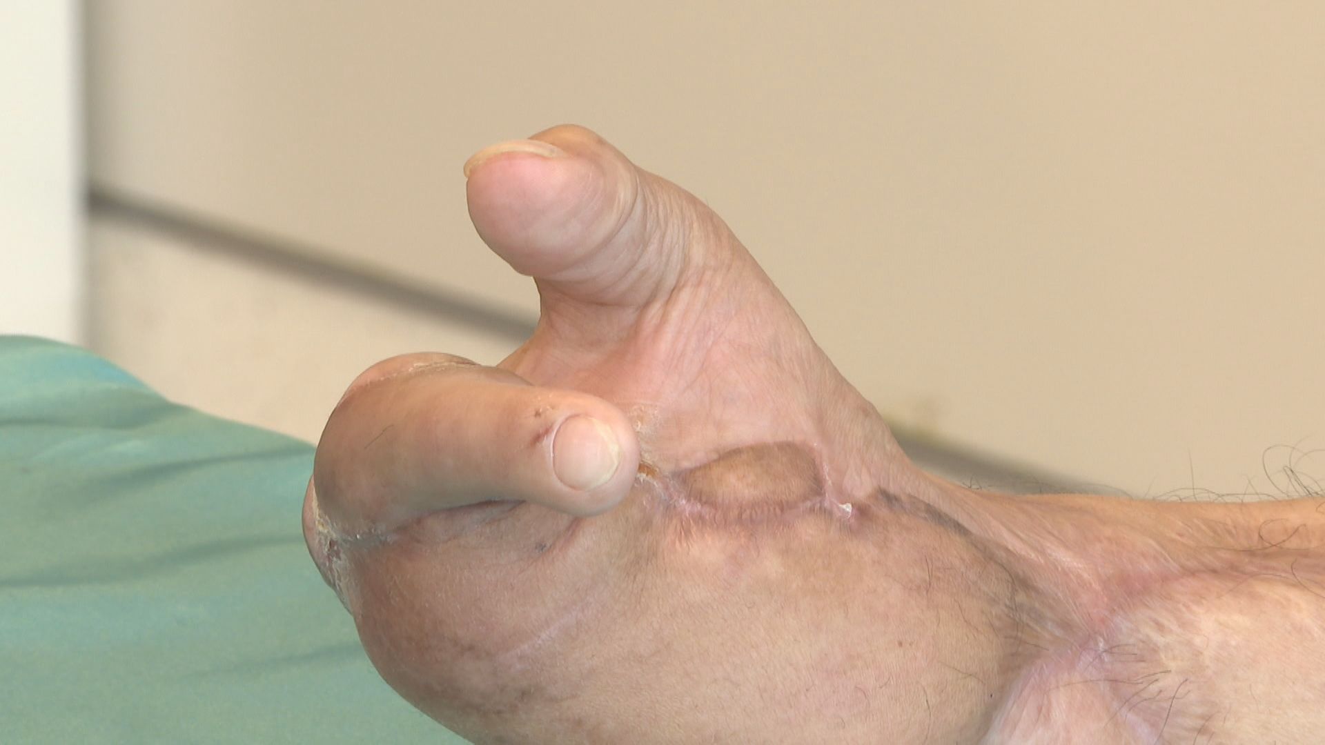 骨科醫師呂俊寬:「我們做這個腳趾的移植,最主要除了接血管還有接韌帶跟神經,他本身是可以動的,那神經才剛接完2個月,所以固定的效果不是那麼好,等到半年到1年其實就會有觸感。」