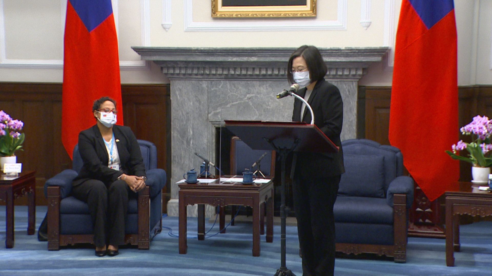 總統蔡英文:「台灣跟各國的關係,就是在一步一步中累積深化,各位都是重要的推手。」貝里斯國會眾議院議長伍姿:「貝里斯對抗過強大的鄰居,深知捍衛主權與獨立權的挑戰,我們再次重申對台灣,在國際社會諸多貢獻的敬意肯定。」