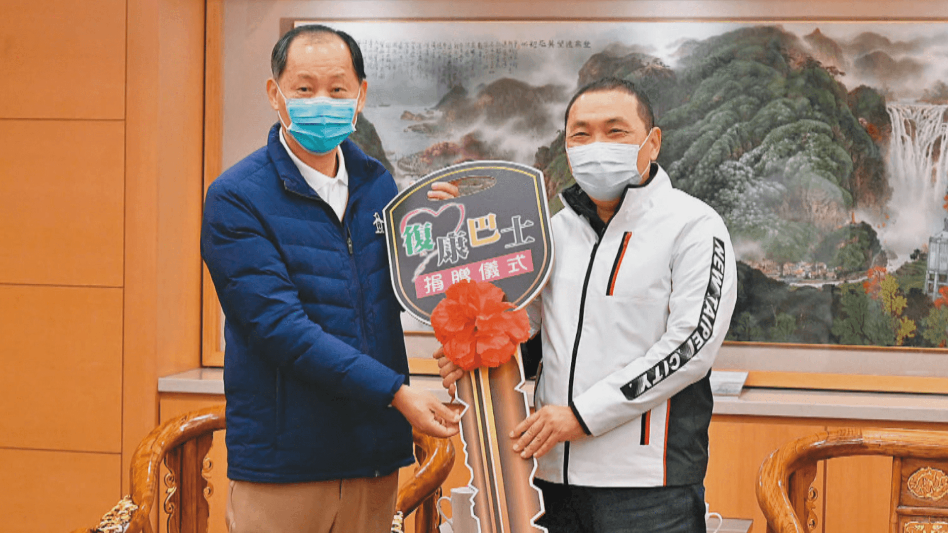 跟新北市長侯友宜開心合照,板橋農會理事長郭進源年初以母親跟太太名義,捐贈復康巴士,不只如此,還有跟朱立倫合照等等,可見地方實力雄厚,如今遭《鏡週刊》爆料涉嫌詐貸自家板橋農會。