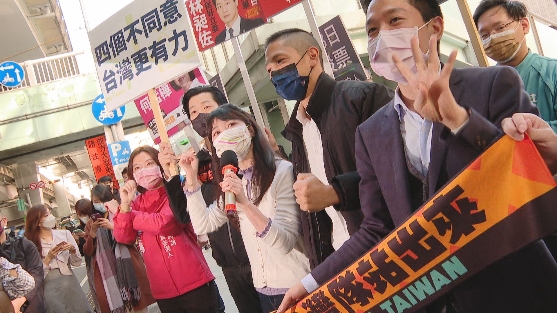 民進黨全台衝公投票,首都圈的雙北選情更是關鍵,新北市一大早也由主委何博文率領立委議員站路口宣講,並宣傳:「台灣交給所有的新北市民,謝謝大家,四個不同意,台灣更有力。」
