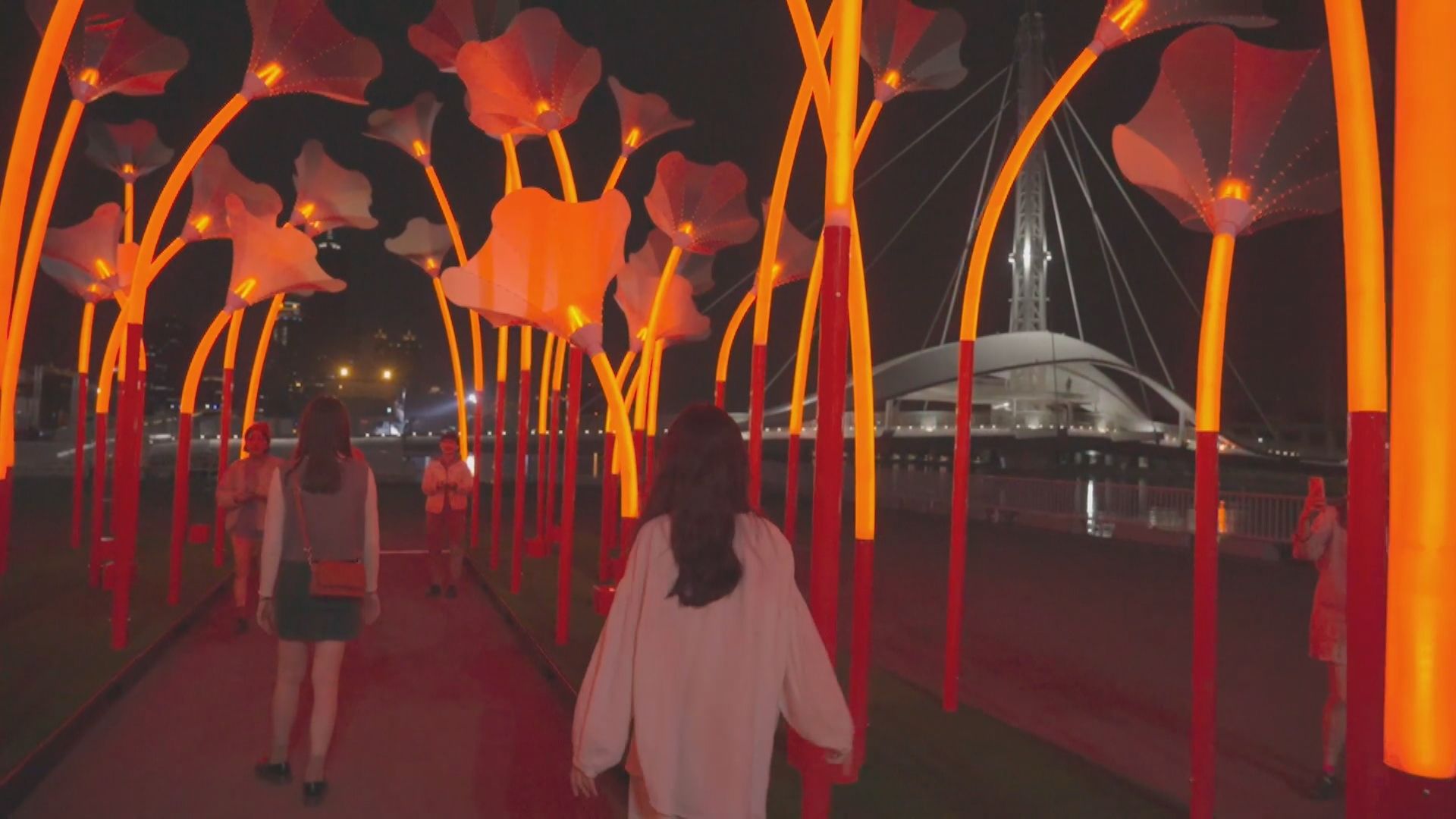 原本就是熱門打卡景點,配合台灣燈會在夜晚打亮燈光,椅子樂譜到了晚上成了閃閃發亮的半圓球體。旅客:「我剛剛沿路就想說,跟爸媽講說,晚上一定會特別不一樣,它的設計感可能會更有味道。(記者:會不會想要晚上再留下來?)當然會啊,我們剛剛就想說,看等一下晚上可以住哪這樣子。」