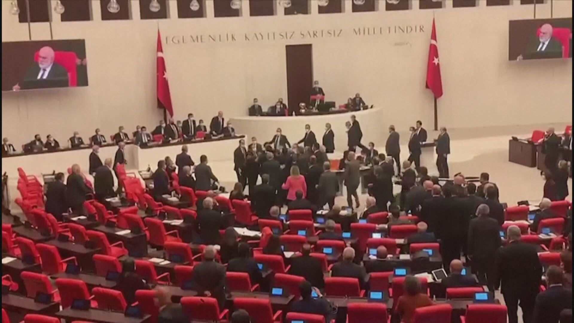 一言不合,就從座位衝到中央,兩班人馬不停朝對方叫囂怒吼,還大打出手。現場氣氛火爆,旁邊的人想攔也攔不住,這場激烈衝突發生在土耳其國會,而起因就在內政部長索魯身上。