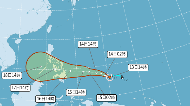 根據中央氣象局資訊,13日下午2時的雷伊颱風中心位置在北緯5.9度,東經140.5度,以每小時17公里速度,向西北西進行。中心氣壓998百帕,近中心最大風速每秒18公尺,瞬間最大陣風每秒25公尺,七級風暴風半徑120公里。