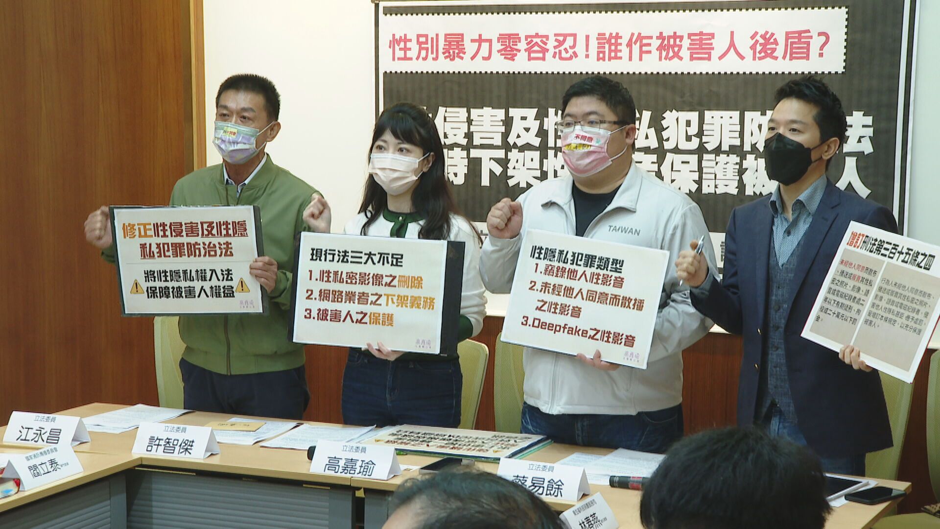 高嘉瑜也指出:「身為deepfake受害人,又是相關事件(私密影片)的受害人,雙重受害人的身分,其實感受真的非常的深。」高嘉瑜呼籲在性侵害防治條例中,加入「恐怖情人條款」,針對私密影片、照片等做出規範,更要求增訂性影音下架義務。