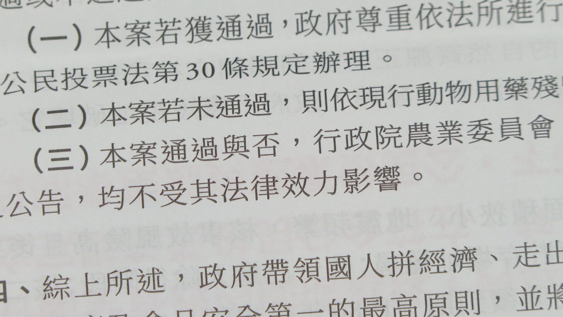 仔細看看公報內「反萊豬公投」,行政院意見書第三點:「該案通過與否,行政院農委會109年9月7日的公告均不受其法律效益影響。」國民黨質疑,難道公投通過也不算數嗎?