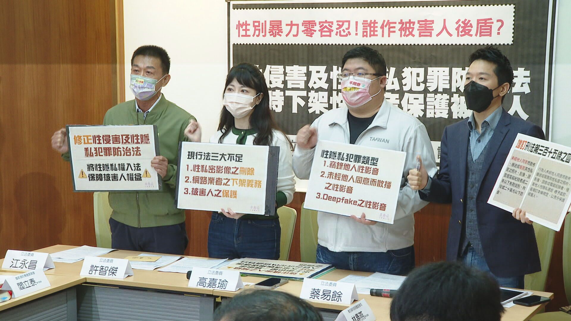 除了修「家暴法」,高嘉瑜另外提議將「性侵害犯罪防治法」,改名為「性侵害及性隱私犯罪防治法」,目的是希望可以保護更多人。另外現有的恐怖情人條款,新增色情報復、深偽色情的規範;至於影音播放平台,則提議增設違反下架義務的處罰規定,要加強被害人的實體及程序保護。