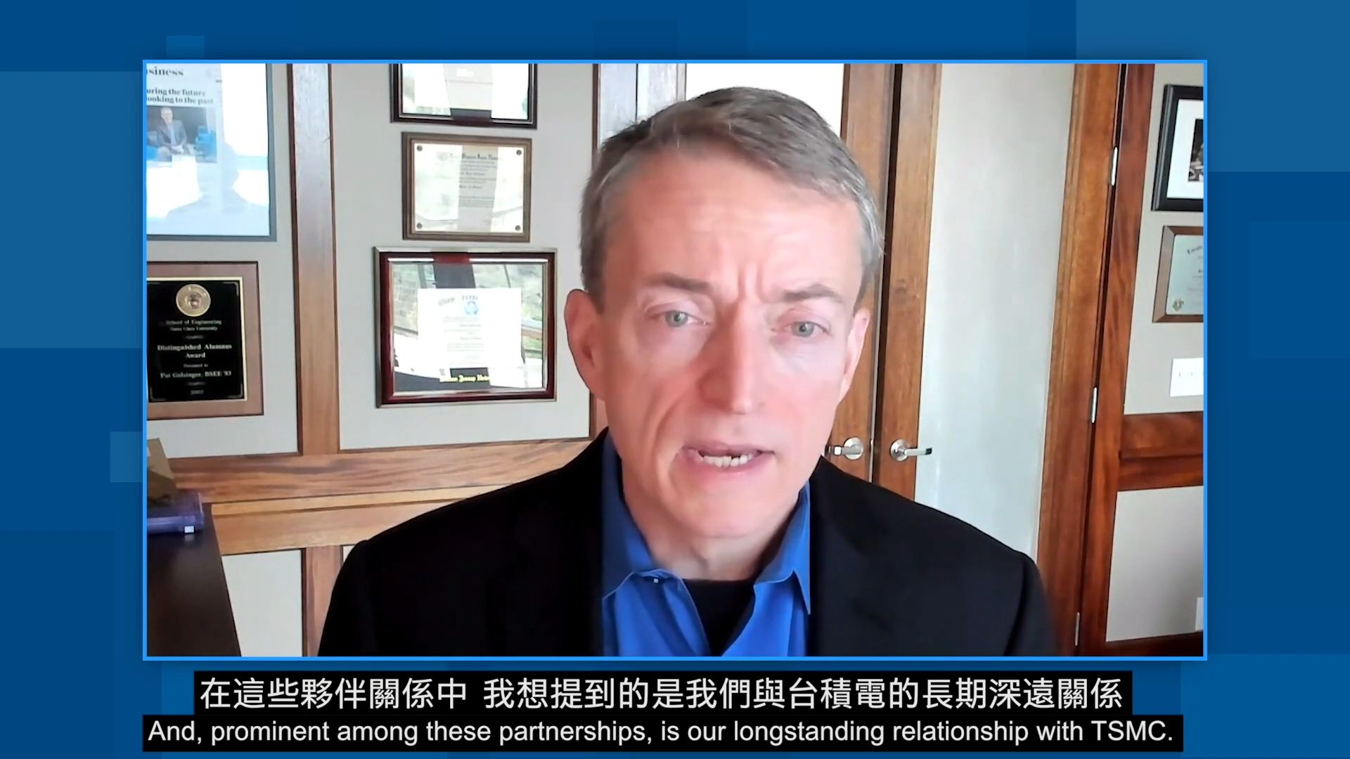 在這些夥伴關係中,我想提到的是我們與台積電的長期深遠關係。台積電在許多方面協助英特爾公司與這個產業釋放了晶片的可能性,創造了前所未見的產品。台積電所獲得的成就,真的很了不起。