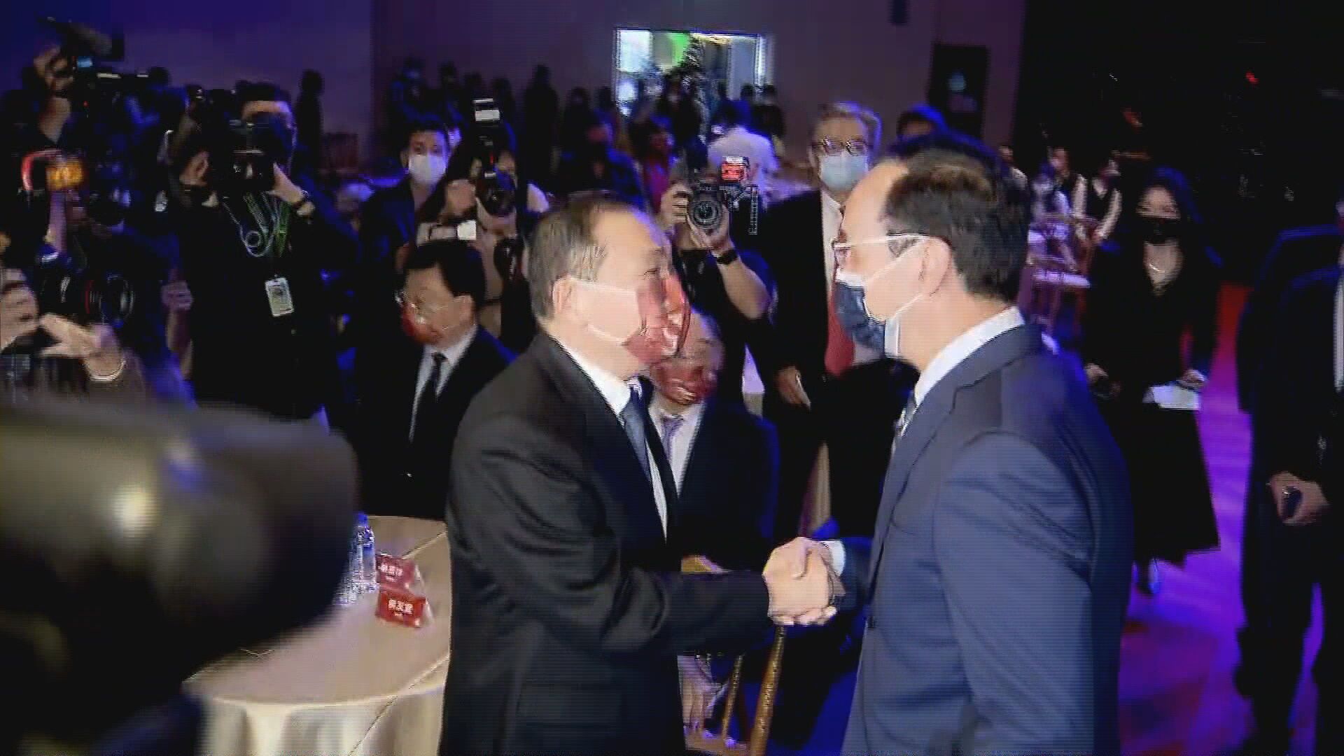 朱立倫入場後,侯友宜起身與他握手,朱還輕拍侯肩膀並表示「彼此互動都很良好,都有溝通。」面對記者追問,「會不會希望侯市長再多呼籲市民出來投公投?」朱立倫表示,「今天希望大家多關心吳舜文新聞獎,希望新聞做得更好,來到這邊只講新聞獎,謝謝。」兩人位置則被安排在紅毯兩側,除了入場的簡單致意,沒有其他互動。